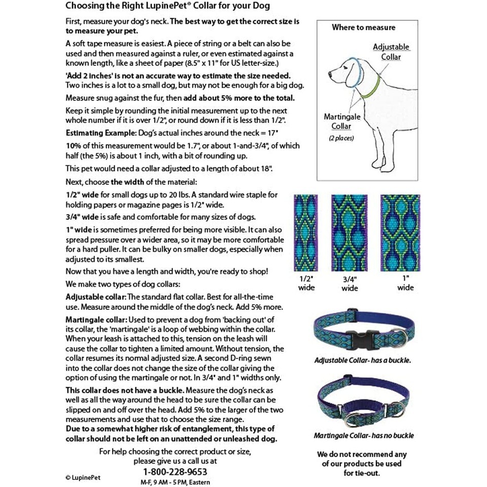 All Lupine products are proudly built in Conway, New Hampshire and Guaranteed (Even if Chewed). 1? collars are suitable for medium and larger dogs. Made from woven nylon, in six rich solid colors. Features strong bar-tack stitching, welded D-ring and a custom designed side-release buckle. Matching leads available. Two adjustable size ranges. To determine collar size, measure snugly around the middle of the dog?s neck, then add an extra 5-percent for a comfortable fit. Machine wash, warm water, mild soap (no bleach or bleach alternative). Air dry. Lupine products are not recommended for tie-out.