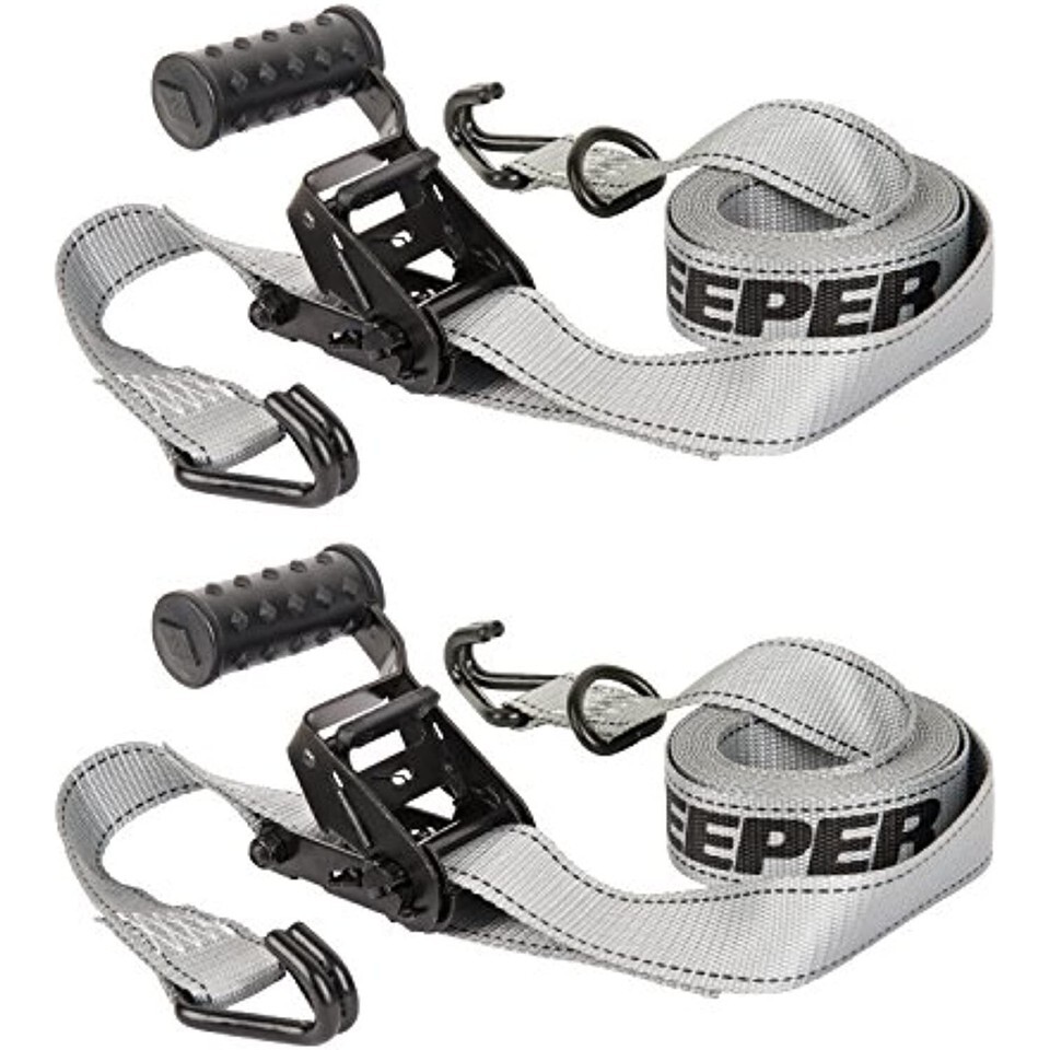 KEEPER Performance Engineered 14' x 1-1/2" Diamond Series ProGrade ratchet tie-downs meet the requirements of heavy cargo transport. Designed to withstand heavier loads and more demanding conditions, ProGrade tie-downs provide unsurpassed strength and reliability for a range of applications. With a working load limit of 1000 lbs. and 3000 lbs. break strength, these tie-downs also deliver wider webbing and comfortable molded rubber grip handles. Heavy duty vinyl-coated Double J-Hooks with sewn in D-Rings. Diamond Grip C-Grip ratchets are easy to grab and provide maximum tension that holds even in unpredictable situations, making Diamond Series ProGrade ratchet tie-downs the ultimate dependable cargo solution.