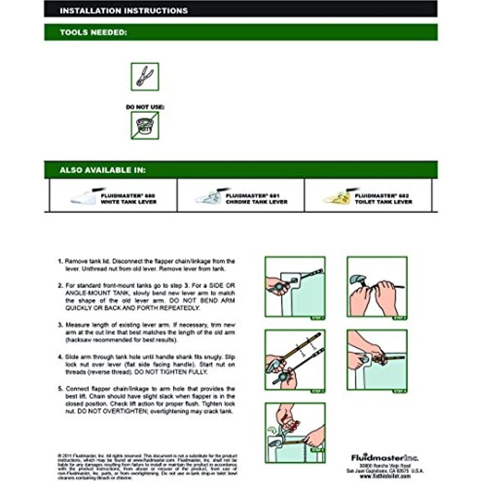 Product Description The Fluidmaster 687 Designer Oil Rubbed Bronze Tank Lever. A designer grade model, built to last with quality construction. This Fluidmaster toilet tank handle features a universal fit design, with arms that bend, or trim to fit almost any front, side, or angle tank style. This toilet trip lever showcases quick and simple installation in just a few steps. Use this chrome finished Fluidmaster toilet handle to replace outdated looking toilet handles, or to fix faulty models, with its high quality metal arm that resists corrosion, or breakage. Fluidmaster trusted toilet tank levers. From the Manufacturer Fluidmaster, the customer?s first choice and preferred supplier of toilet tank trim since 1957. Showcasing a complete line of toilet repair parts that include; fill valves, flush valves, flappers, tank levers, dual flush valves, bowl wax, toilet repair kits, seals, connectors and more. Fluidmaster?s manufacturing facilities across the world reach over 90 countries worldwide with unparalleled quality. Fluidmaster remains the #1 toilet repair brand in the world, with parts found in more toilets than all other brands.