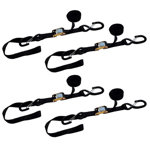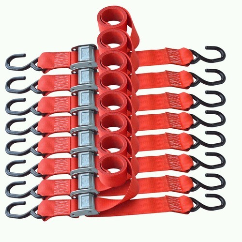 Keeper 8' x 2" Cam Buckle Tie-Downs are specially designed for quick on/quick off use. Fabricated from Keeper Hi-Test webbing, these tie-downs are abrasion resistant and remain durable even after repeated usage. With 2" wide mouth cam buckles, 800 lbs. working load limit and 2,400 lbs. break strength, these tie-downs are perfect for use with a range of different vehicles, medium size tractors. Tough cam buckles grip the webbing without prematurely damaging the tie-down, and a quick-release thumb button makes them easy to use. Full-size vinyl-coated S-hooks with latch attach securely, ensuring outstanding performance when transporting your equipment. 2 pack.