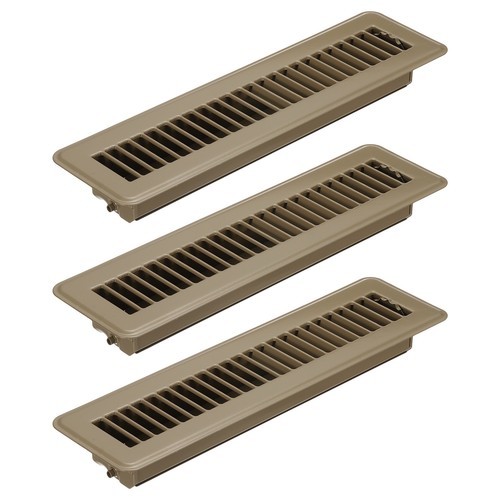 Highlights: Size: 2" x 12" Finish: Brown Durable brown gloss powder coated finish Stamped face toe space grille Sturdy all steel construction Widespread air diffusion