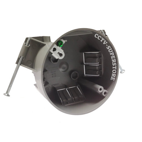 Vapor barrier boxes prevent unwanted penetration of exterior air and help maintain the existing interior environment from elements outside the structure. RACO nonmetallic vapor barrier cable boxes provide the installer with a cost alternative that is ligh Highlights: 4 Inch Round Noryl Plastic Flush Bracket 1/2 inch Setback 4 Non Metallic Cable Clamps 28.1 CU IN Capacity Base Mounted Ground Screw Full L Shaped Ground Strap Slotted 45 degree mounting holes on inside The metal ground strap runs from one fixture screw to the other for a safer installation and provides convenient access to both ground screws