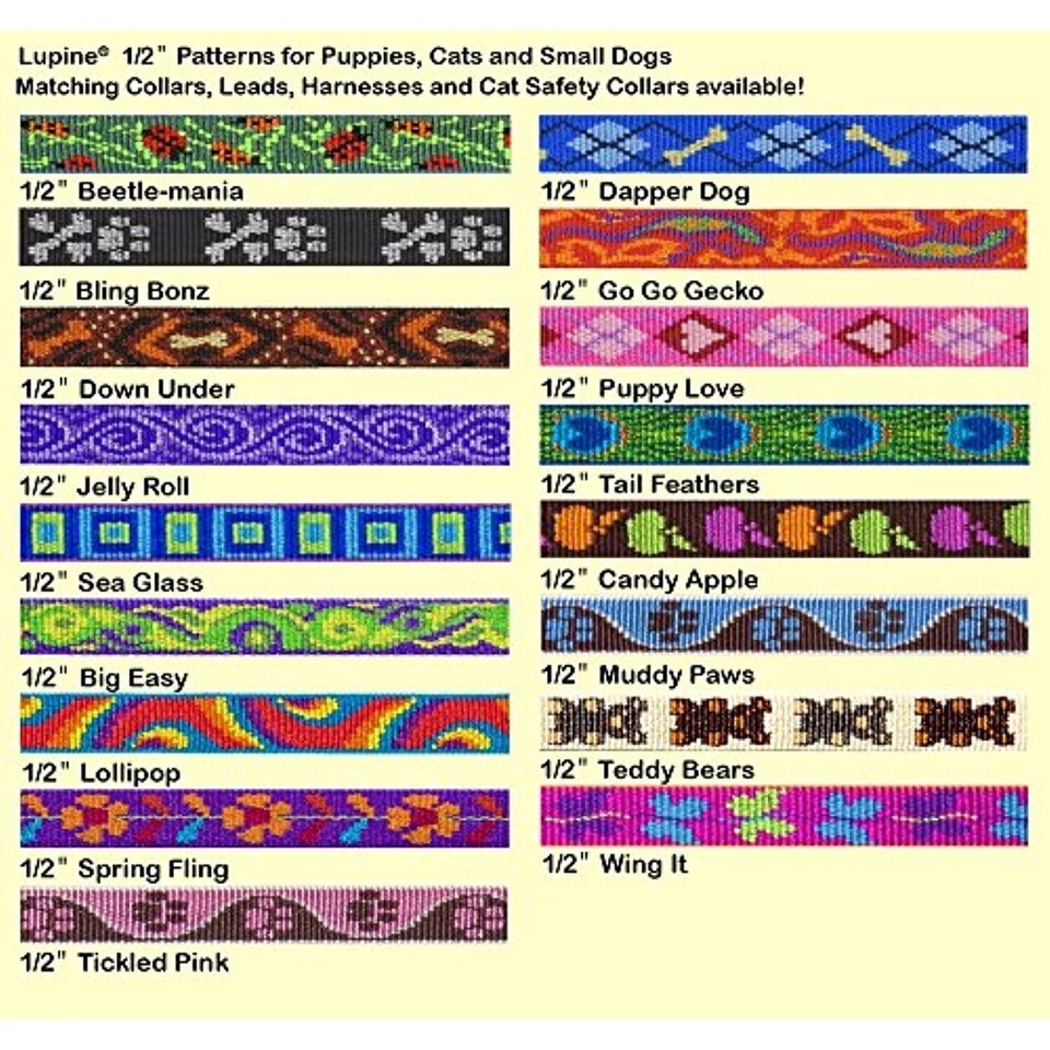All Lupine products are proudly built in Conway, New Hampshire and Guaranteed (Even if Chewed). Made from jacquard woven nylon, with the pattern woven into the webbing (never printed or sewn on!) Features strong bar-tack stitching, unique padded handle and a zinc-plated trigger snap. Offered in a range of fashion-inspired patterns with matching adjustable collars available. Machine wash, warm water, mild soap (no bleach or bleach alternative). Air dry. Lupine products are not recommended for tie-out.