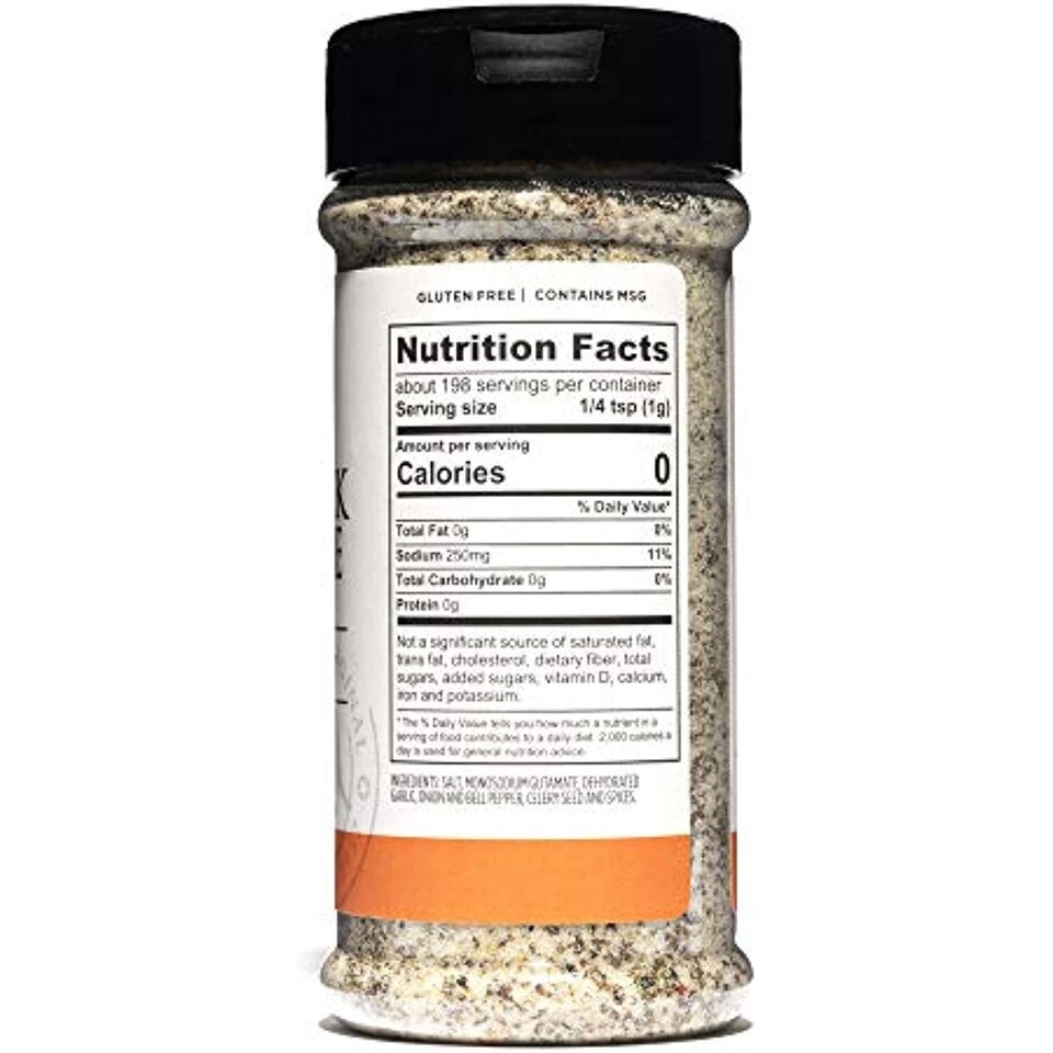 A mild onion and garlic overtaste, with a hint of bell pepper. An excellent general seasoning, particularly effective at bringing out the subtle flavors of salads, vegetables and seafoods. 7oz.
