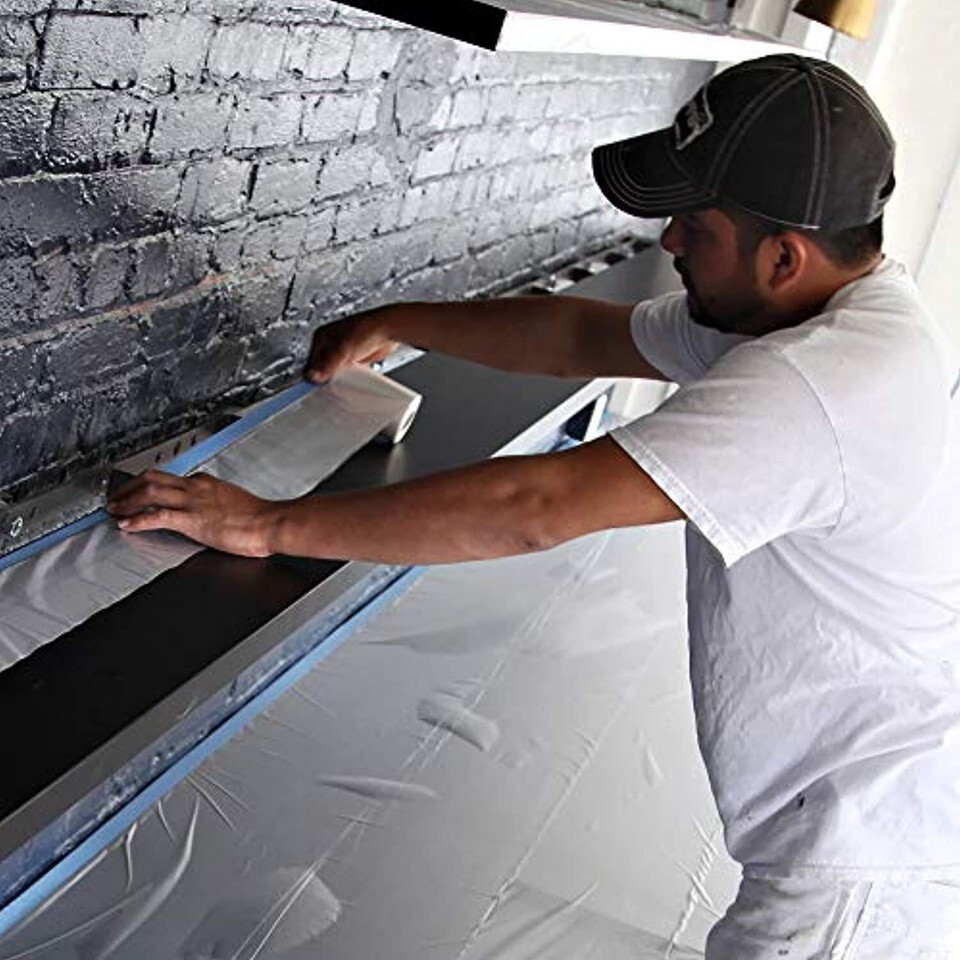 Pre-taped mask film is perfect protection for use in areas where straight lines are needed
