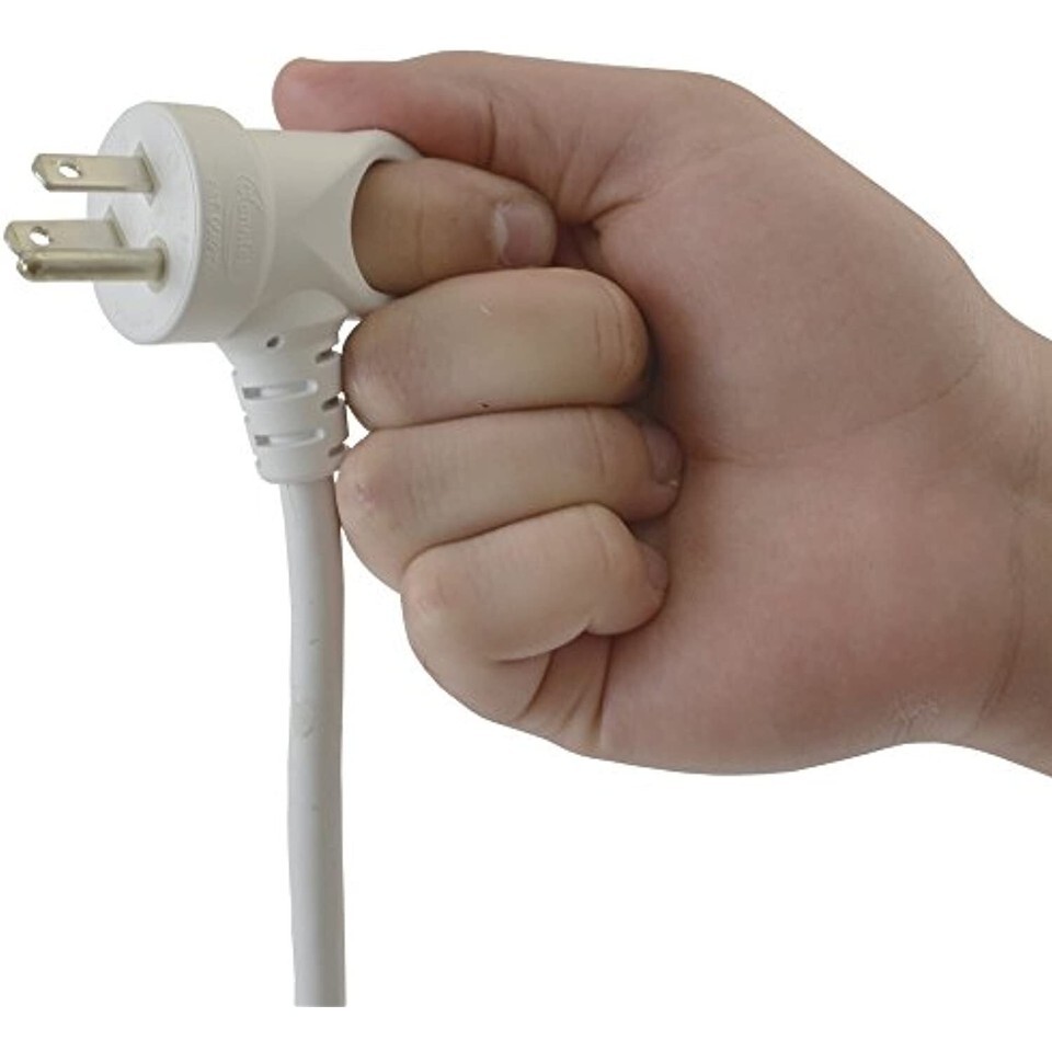 15FT SJT 16/3 Indoor Extension Cord White cable with glowing strip, Glowing in the Dark and Safe-T-GLO. U.S 3 Prong NEMA 5-15P, Left Angle, With I-Ring for easy, user friendly connection, easily release the plug. NEMA 5-15R U.S 3 prong Female Connector, Clear, with LED power indicator light Great for use with entertainment centers, desks, furniture and more! Approval: I-Ring Plug: Patented, Plug, Connector, and SJT: UL, C-UL Limited one year warranty