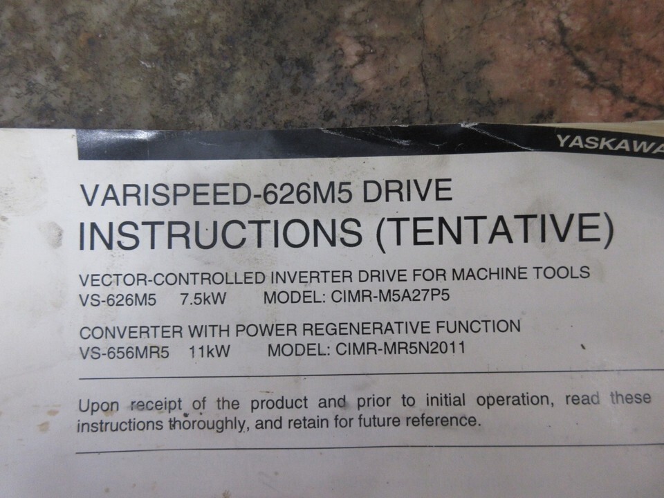 YASKAWA VARISPEED 626M5 DRIVE INSTRUCTIONS SPINDLE DRIVE MANUAL