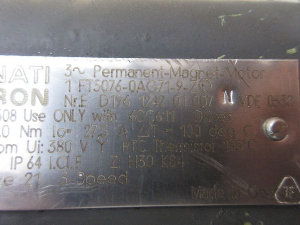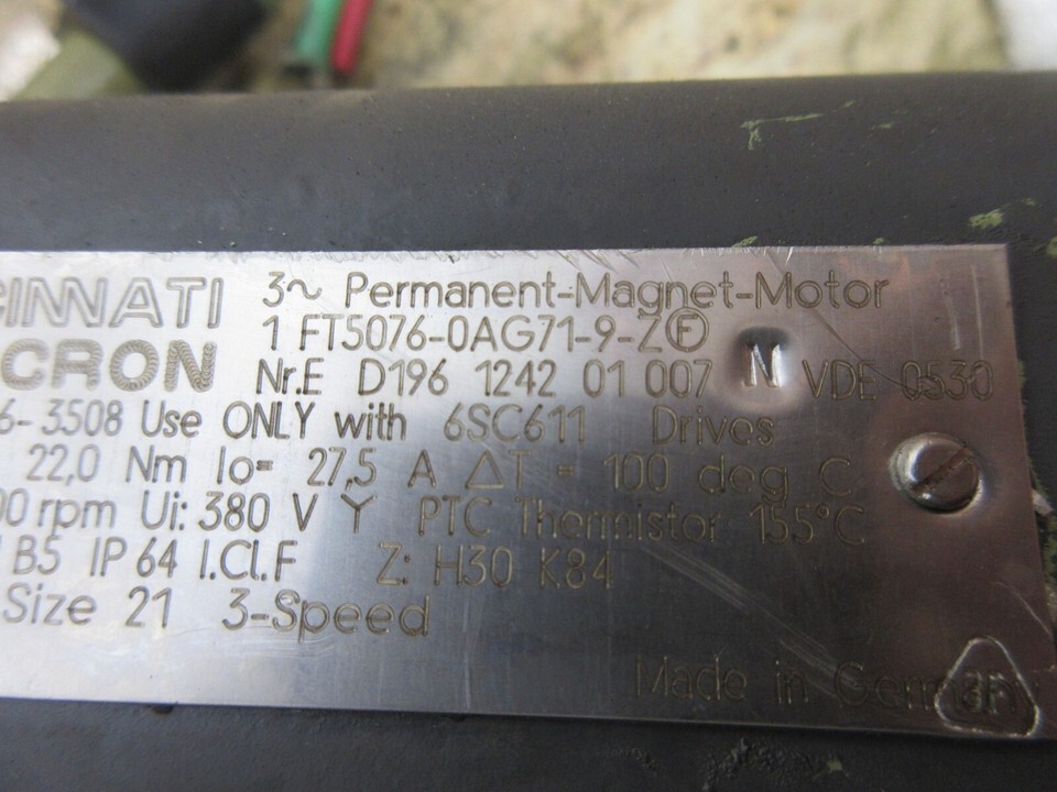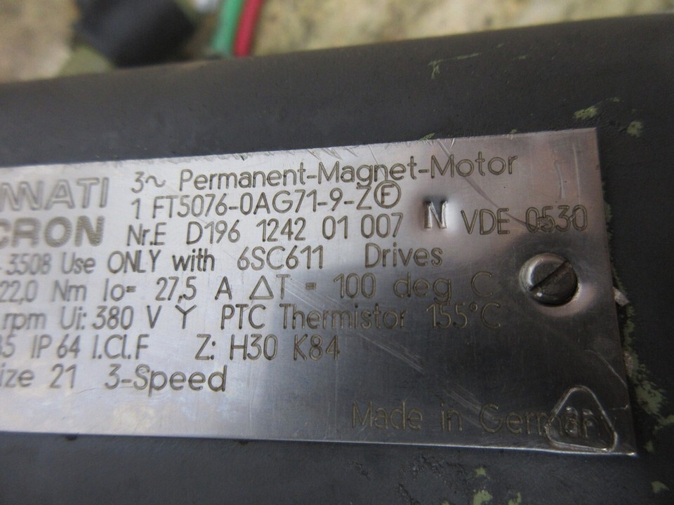 CINCINNATI MILACRON PERMANENT MAGNET MOTOR 1FT5076-0AG71-9-Z D196 1242 1 FT5076