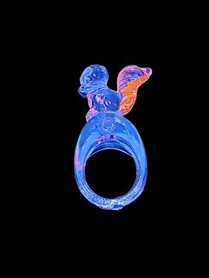 VTG Clear Lucite Squirrel Figural Ring UV Glow 1950-60s Hong Kong Carnival Prize
