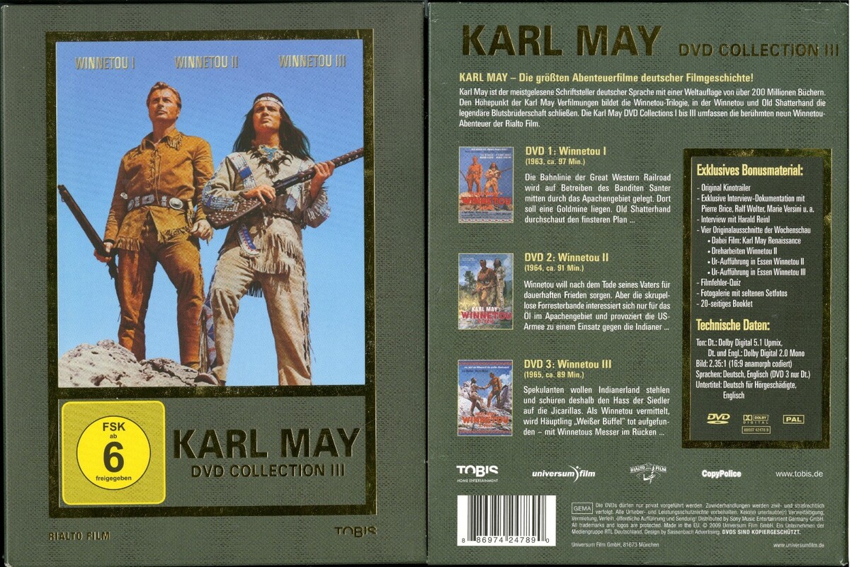 KARL MAY COLLECTION VOL III 3 DVD SET (WINNETOU I II III) PAL GERMAN REGION 2 LE