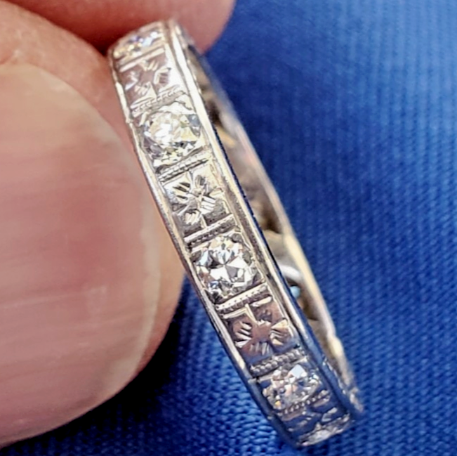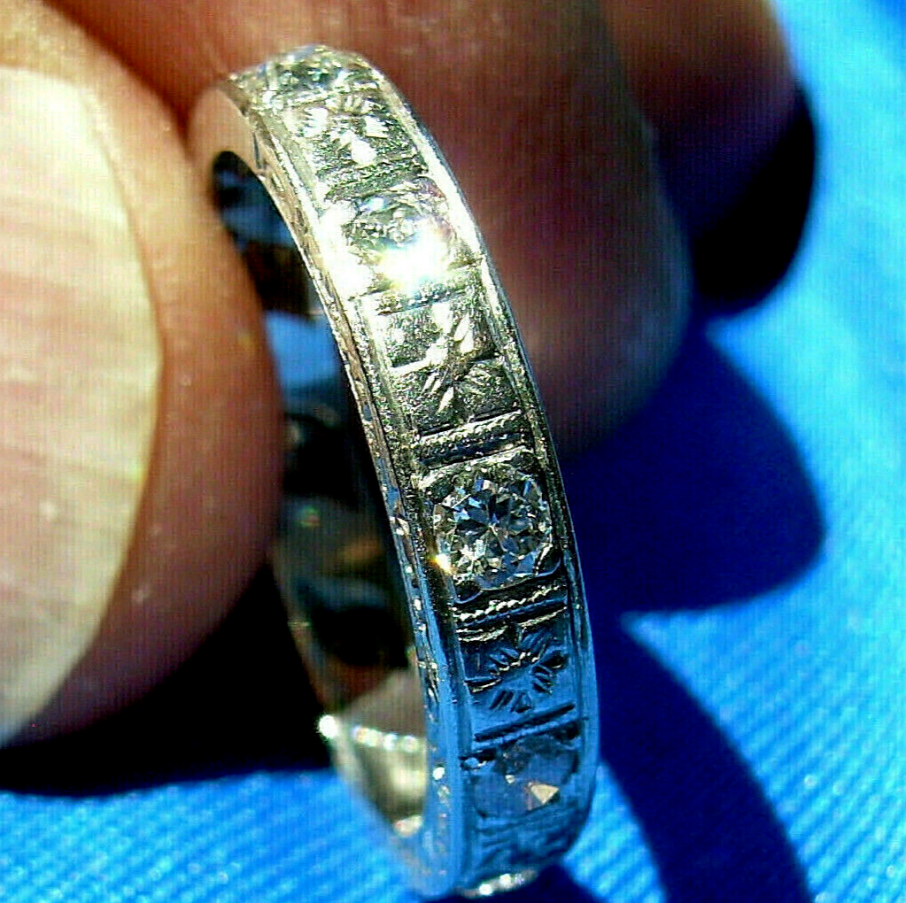 Earth mined Diamond Art Deco Wedding Band Antique Solid Platinum Eternity Ring 5