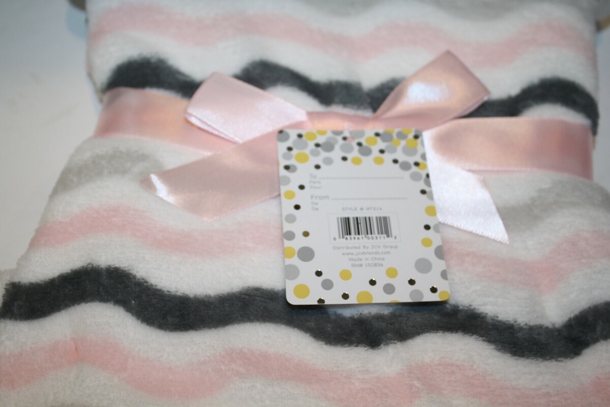 Zak & Zoey Plush Baby Girls Blanket Soft Pink Gray Chevron Striped New Gift 30"