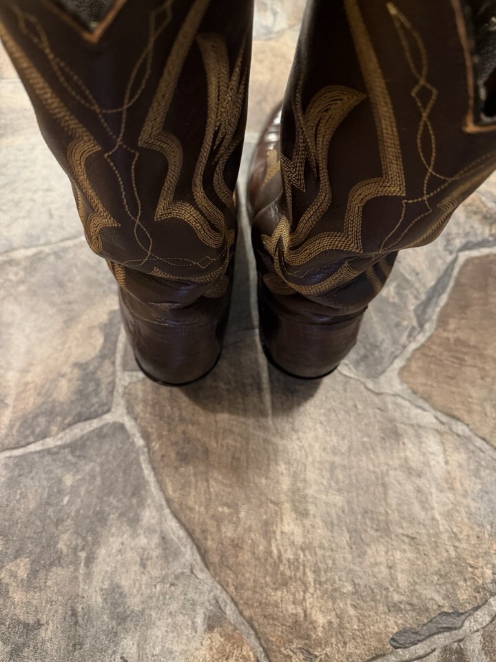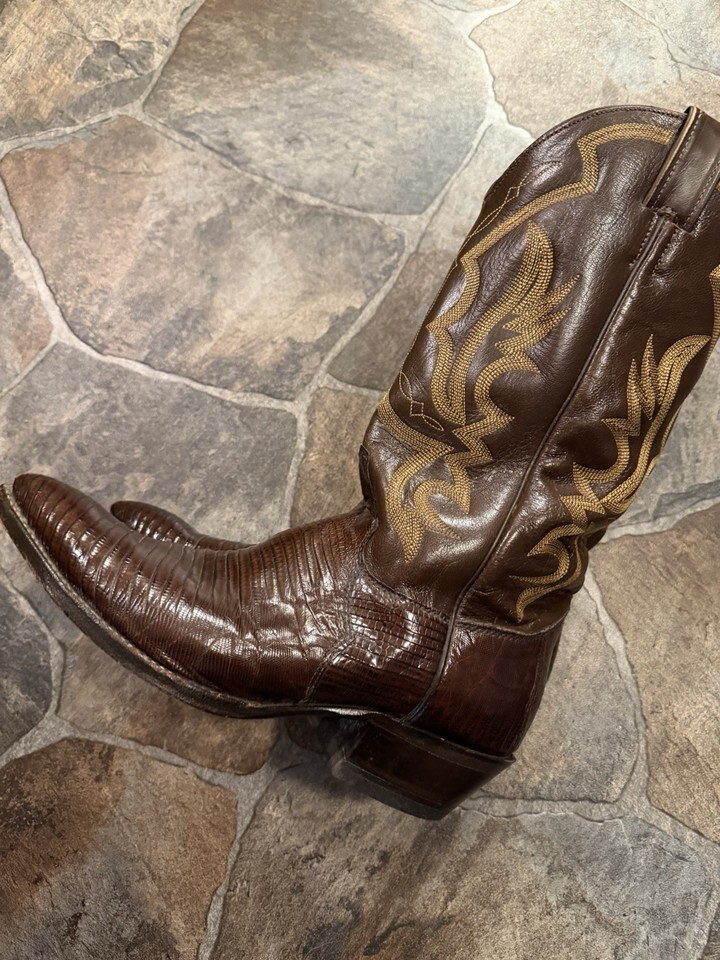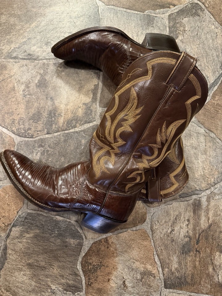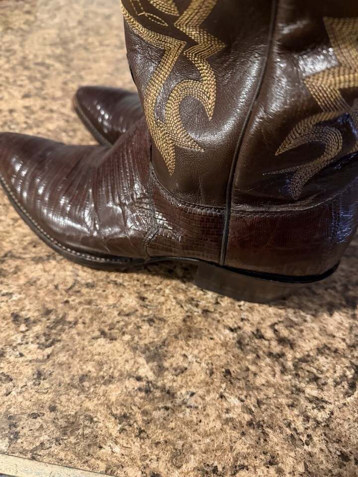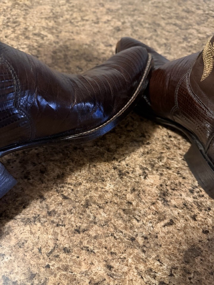 Vintage Justin Mens 8306 Size 9.5D Chocolate Iguana Lizard Cowboy Boots USA MADE. Condition is Pre-owned - Good. Shipped with USPS Ground Advantage.