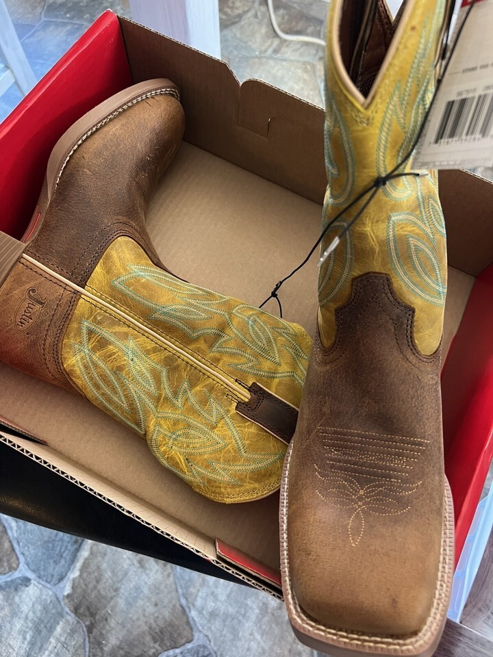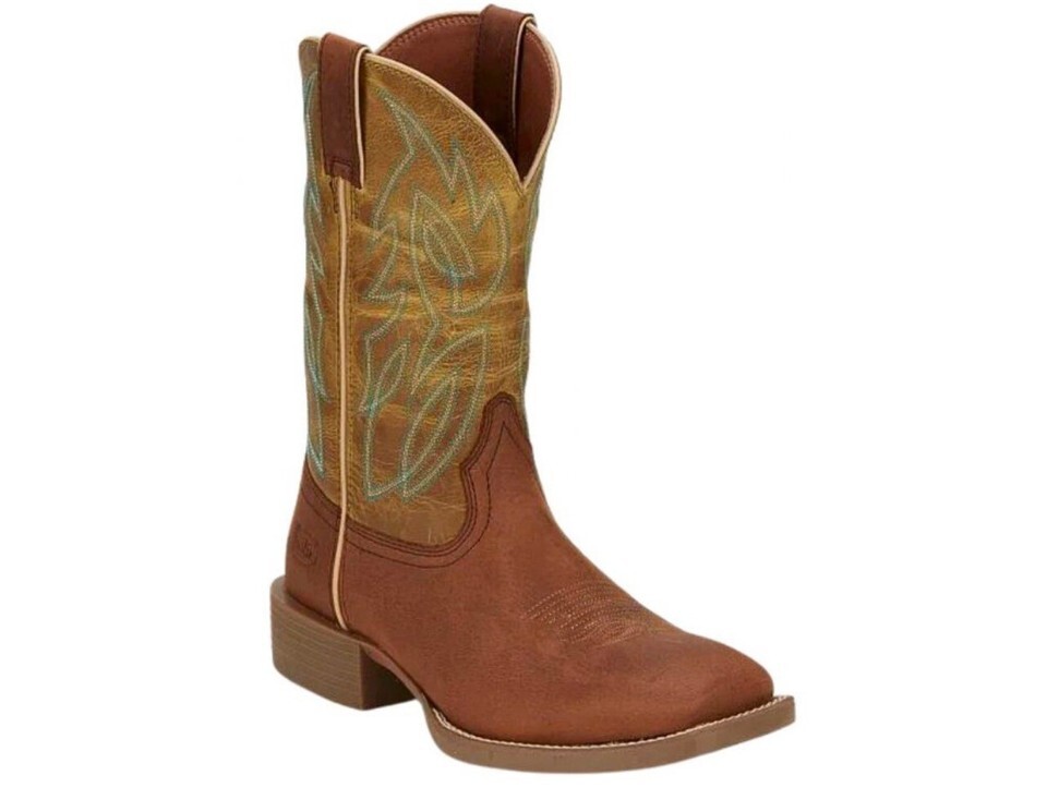 Justin Men's Canter 11" Wide Square Toe Western Boot-Clay Brown/Apple Green(8D). Shipped with USPS Ground Advantage.