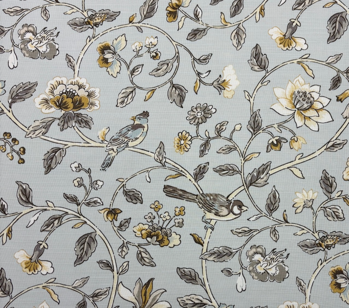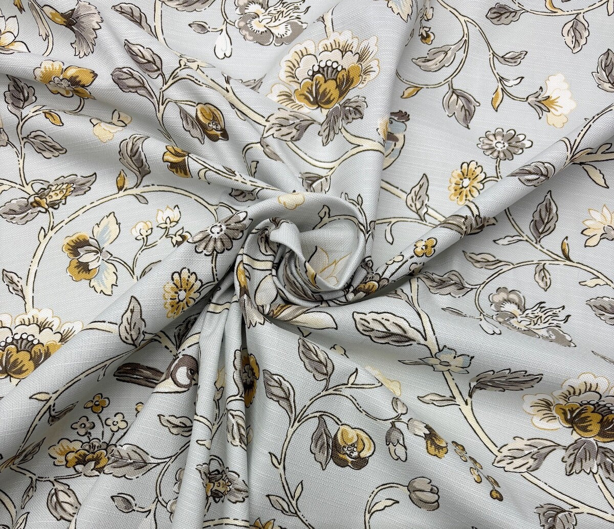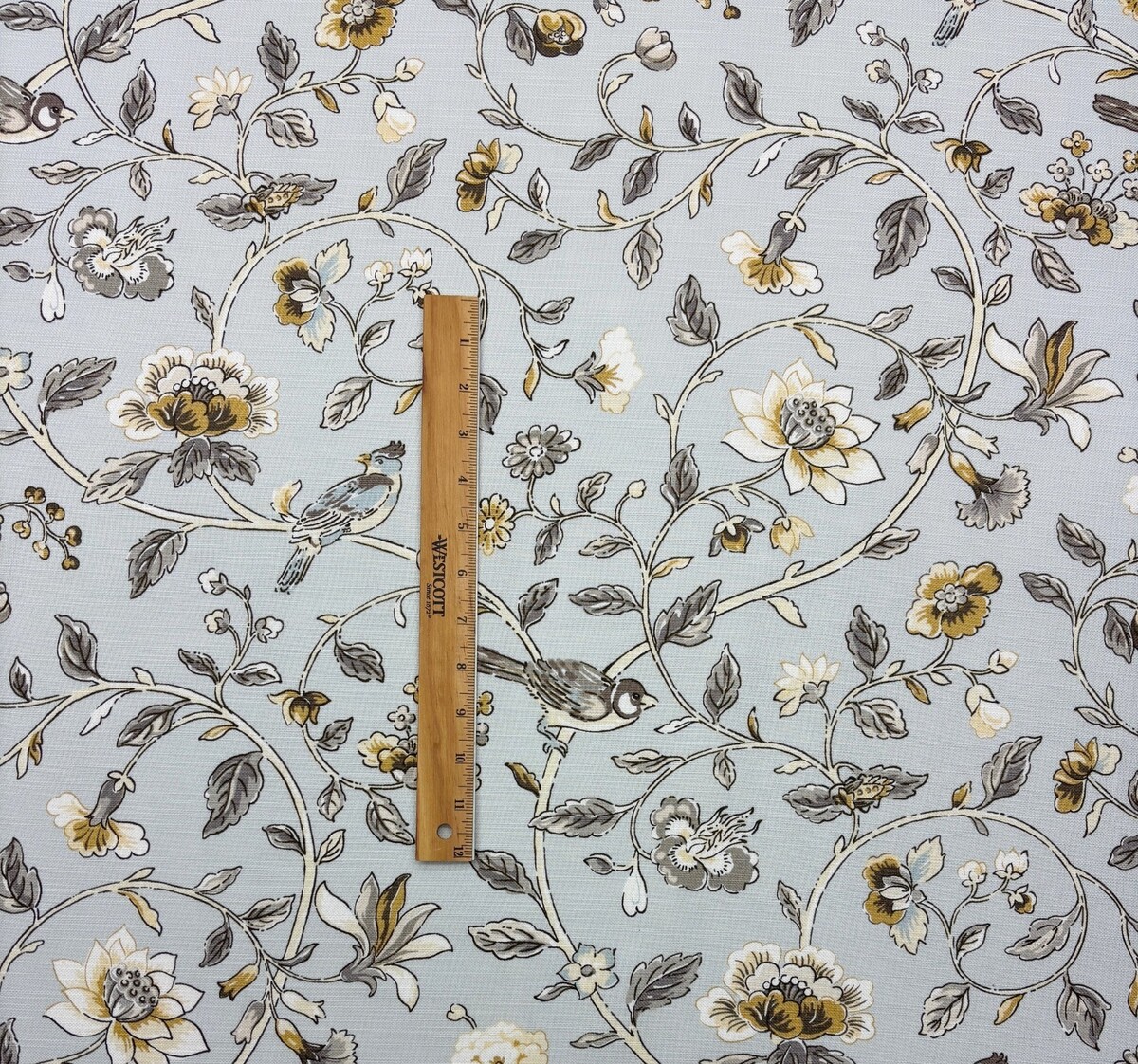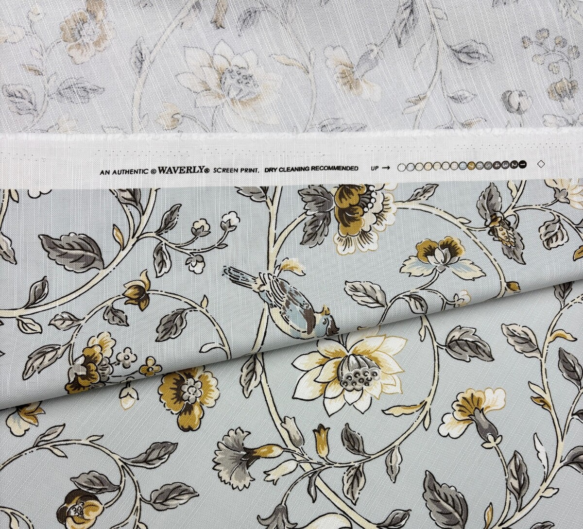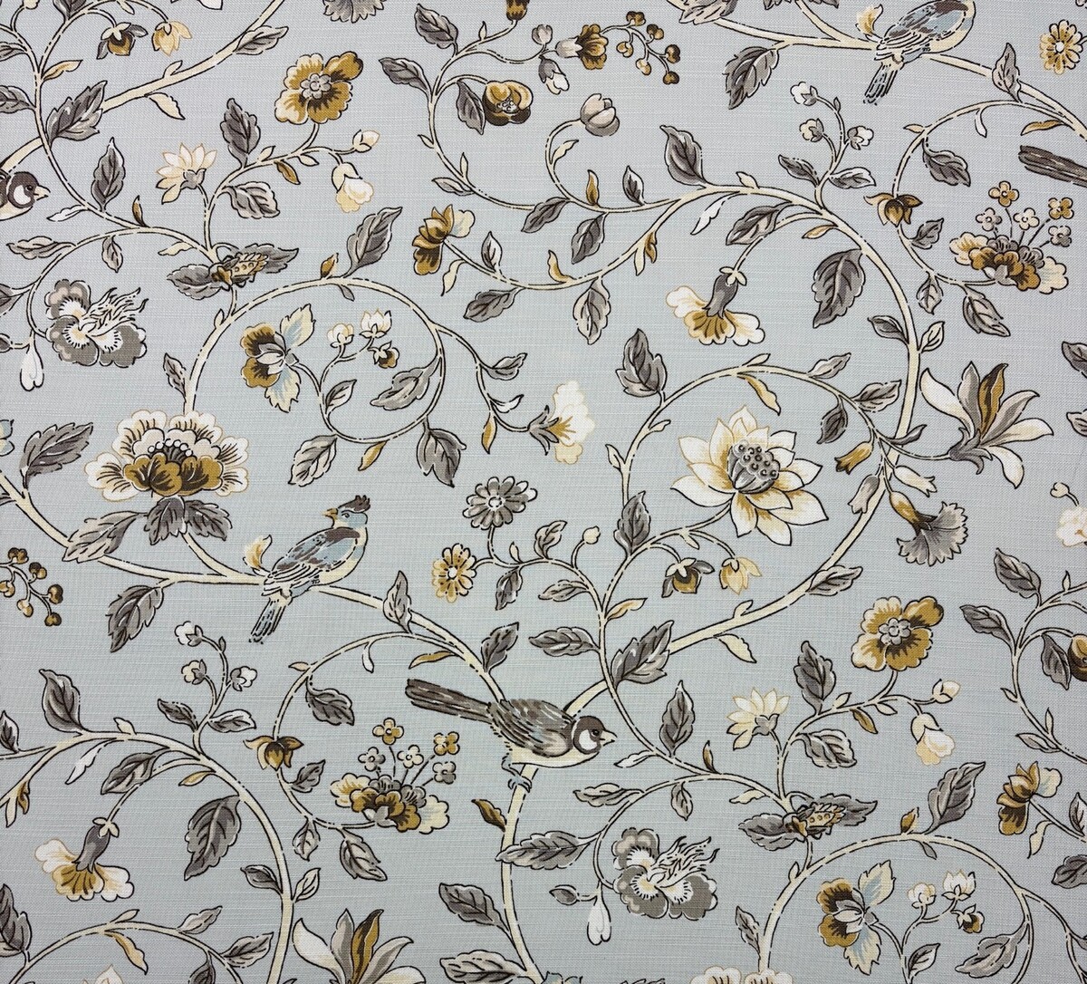 WAVERLY SUMMER ISLES DOVE GRAY BIRD VINE MULTIPURPOSE COTTON FABRIC BY YARD 54"W