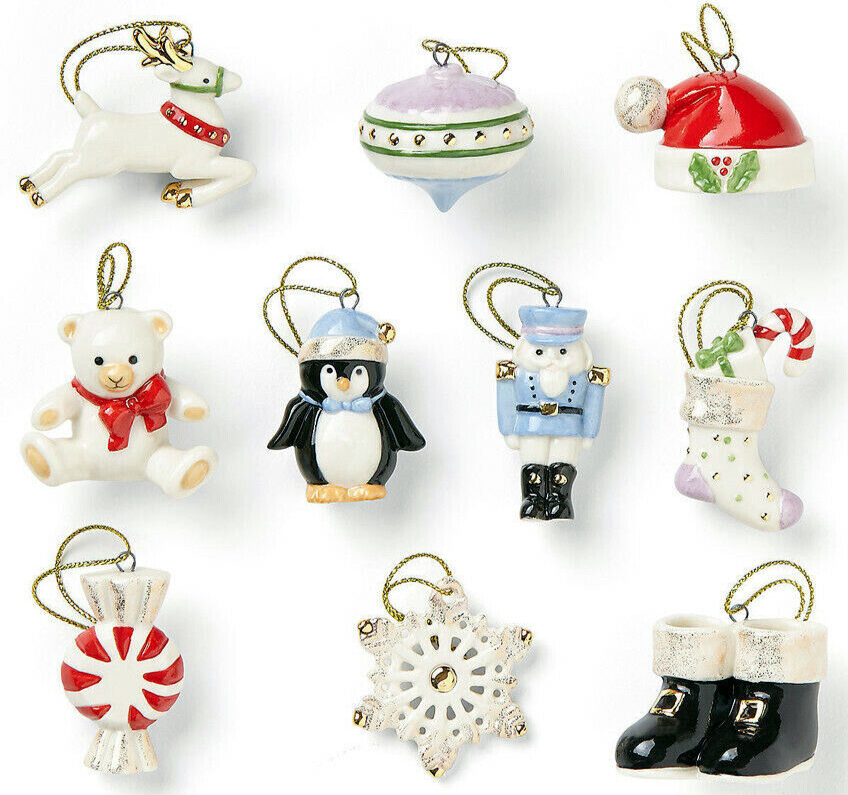 Lenox Christmas Memories 10 PC. Mini Ornament Set Santa-Reindeer-Nutcracker NEW