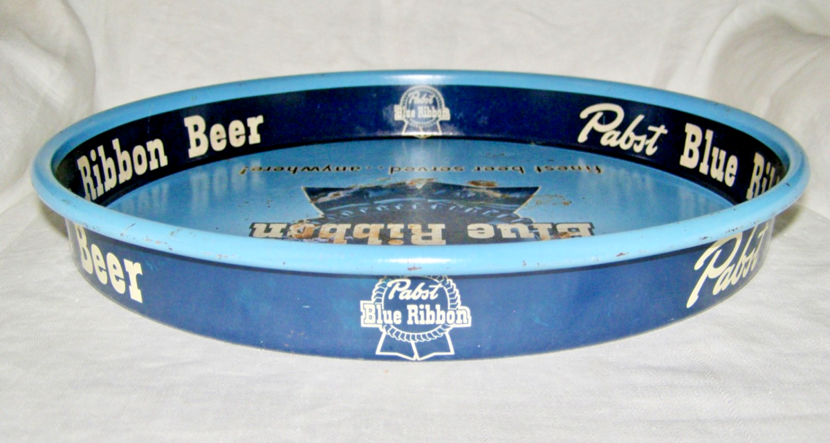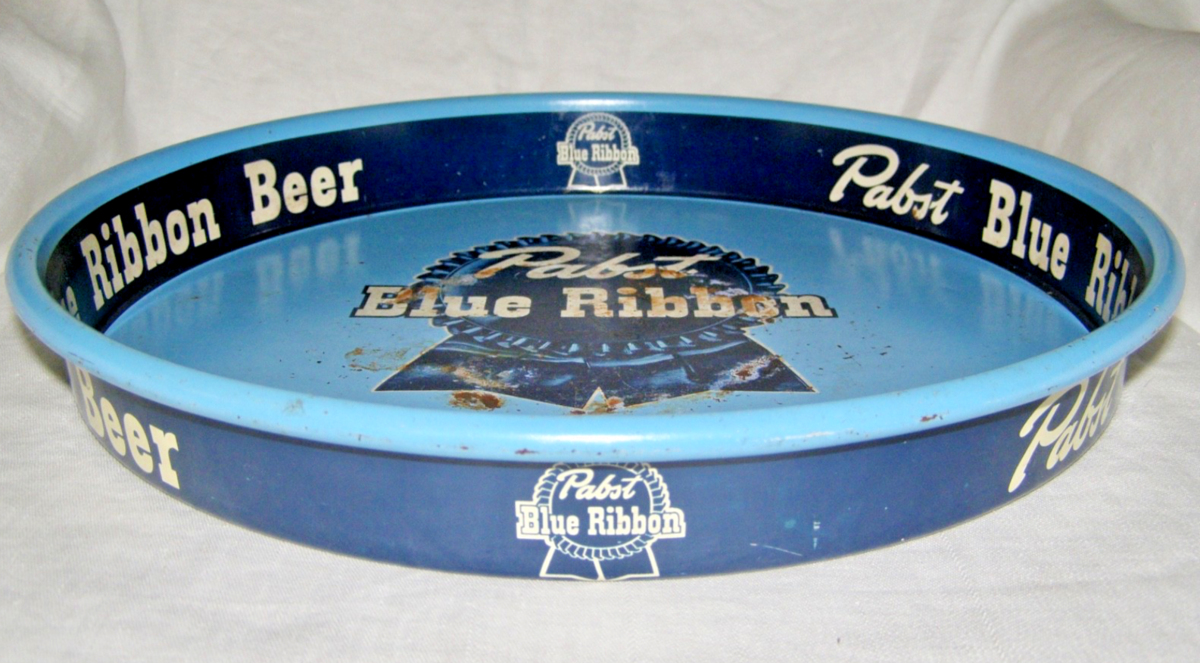 VINTAGE PABST BLUE RIBBON BEER- STURDY METAL BEER TRAY-BOLD GRAPHIC DESIGN-13" D