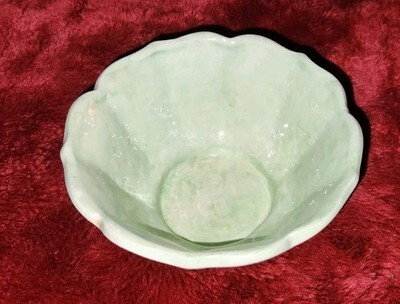 Good used condition small bowl. Marked on the bottom with a BB. Not sure what this means. Measures 6 inches across the top and 3 inches tall. Green and nice floral design. Small chips on the base. No other cracks or chips noticed.