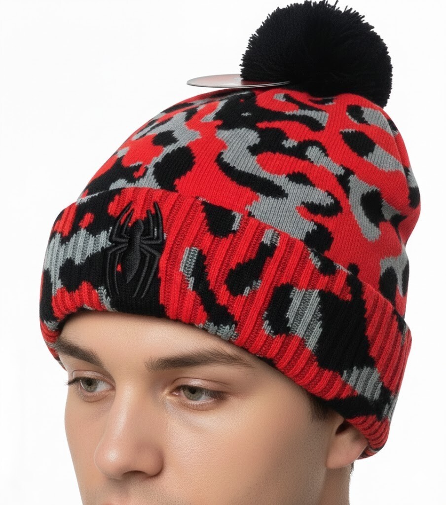 The Concept One Marvel Spider-Man Youth/Adult Cuff Beanie Hat with Pom Pom in one size is a stylish and versatile accessory featuring a solid pattern with Spider-Man character design.