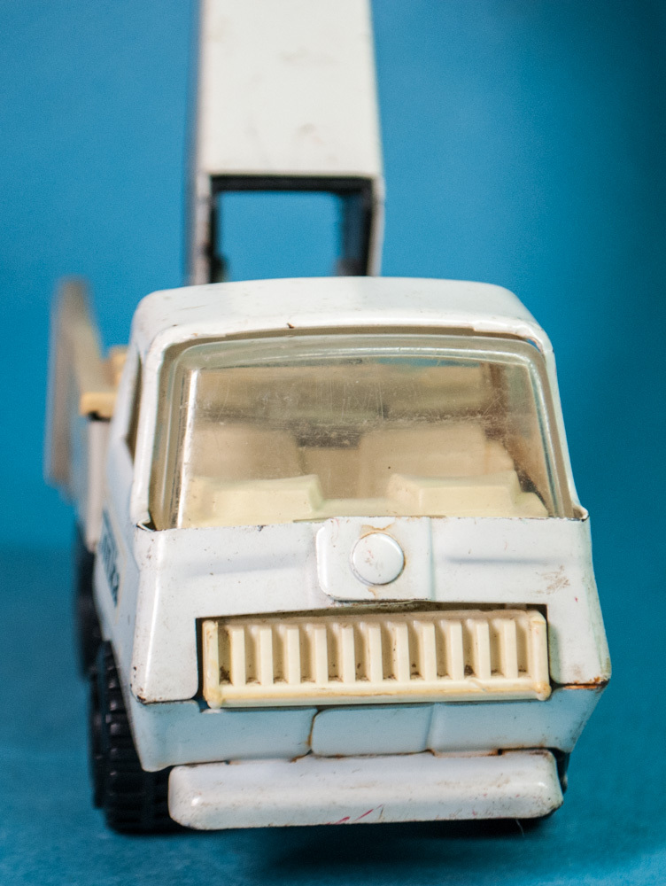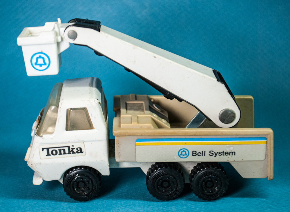 Tonka Bell System telephone line service vehicle with a bucket at the end of a crane that fully rotates and bends. This cherry picker truck is diecast metal and plastic. It is used. Wheels roll freely. Please contact me with any questions.