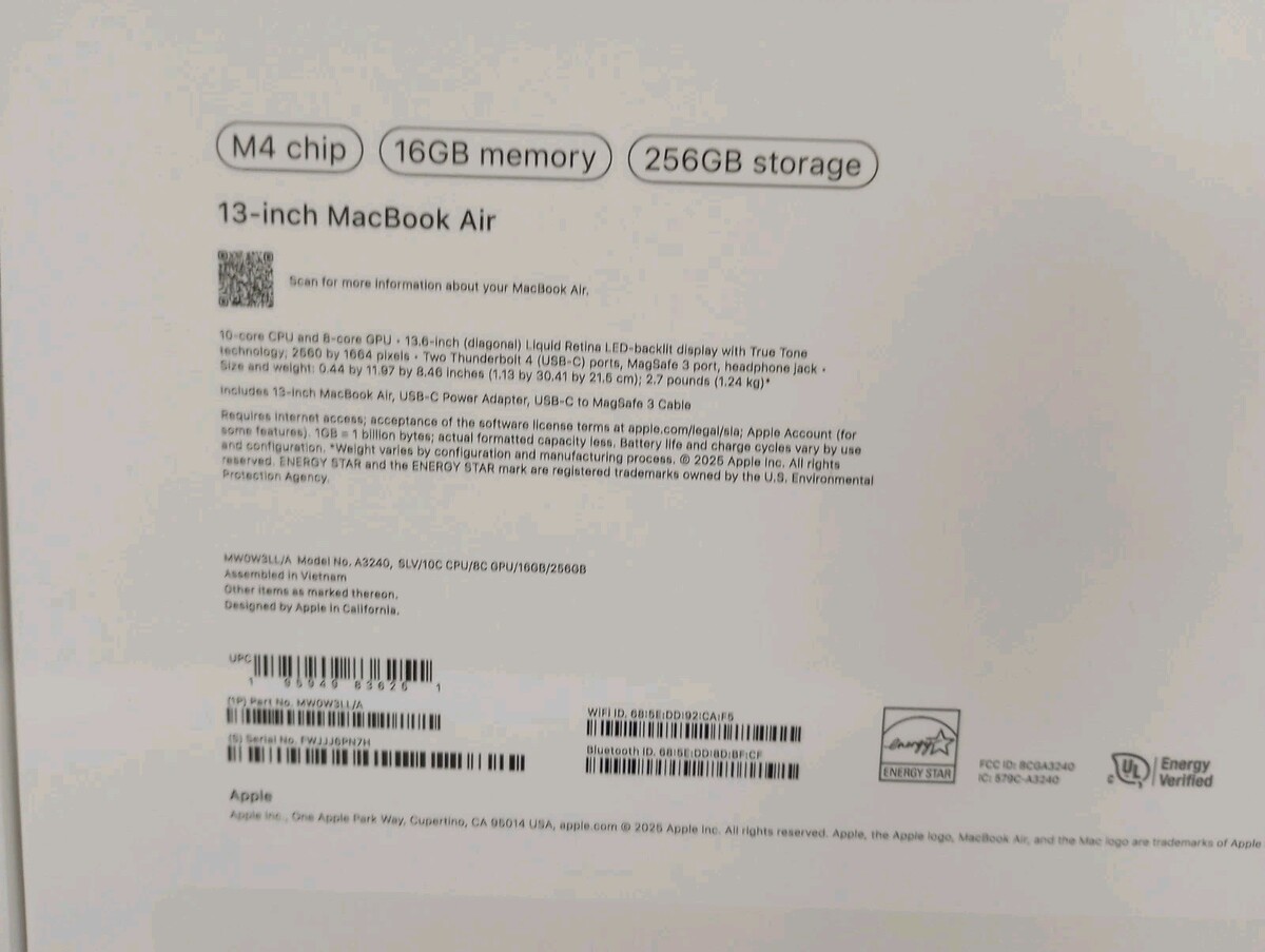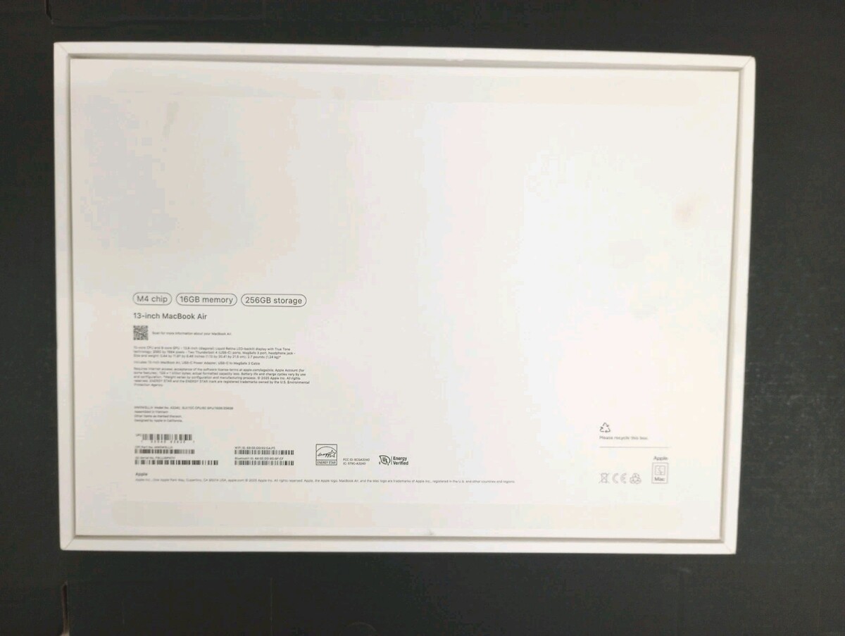 Empty Box Only Silver Apple MacBook Air 16GB RAM - 256GB - M4 Chip - A3240