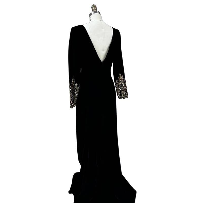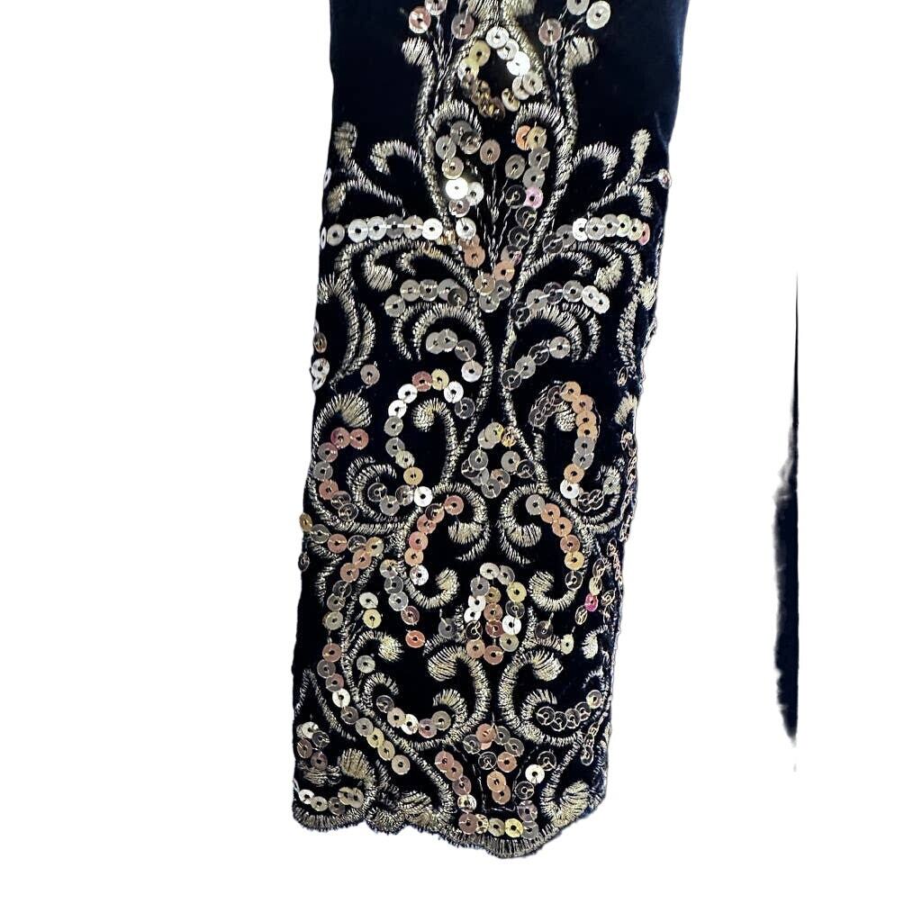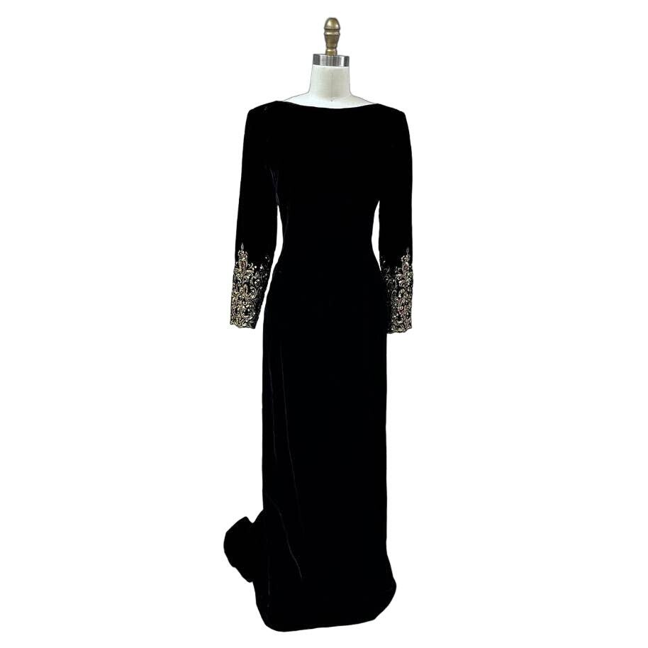 VTG Victor Costa Boutique Black Velvet Gown Gold Sequin Sleeves Old Hollywood S