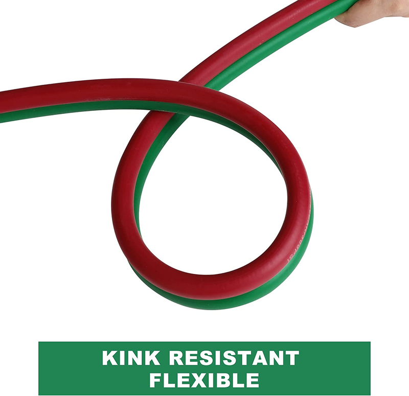 HIGH QUALITY RUBBER: Hromee oxygen acetylene hose is made of acetylene rubber for maximum flexibility which is easy to store on reels and also helps increase the durability and resistance to kink. Other than these, it also can stay flexible in extreme temperature. All these features make it ideal for long-term use.