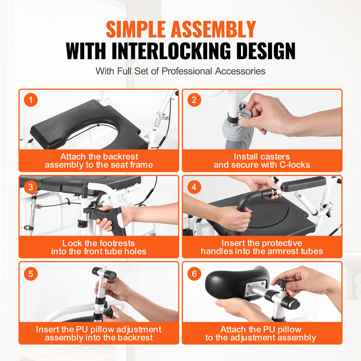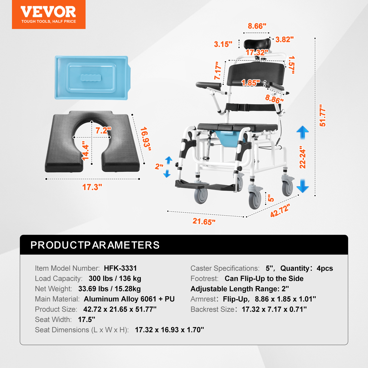 VEVOR Shower Wheelchair, 17.5in Width for Inside Shower, 300 lbs Capacity