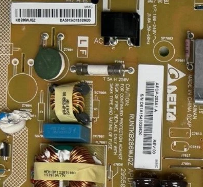 The Sharp APDP-203A1 / RUNTKB286WJQZ Power Supply + Drive Unit is a genuine Sharp combined power and drive module designed to deliver stable, regulated power while controlling critical drive functions for compatible LED TVs. This power supply and drive unit ensures reliable startup, consistent operation, and proper voltage distribution, making it an essential replacement when the original module causes power or backlight issues.