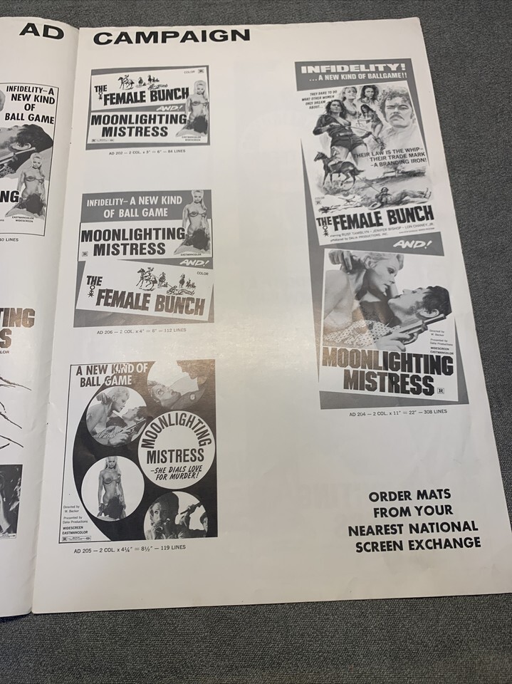 Moonlighting Mistresss Press Kit Movie Poster SEXPLOITATION 1970 Pressbook LG