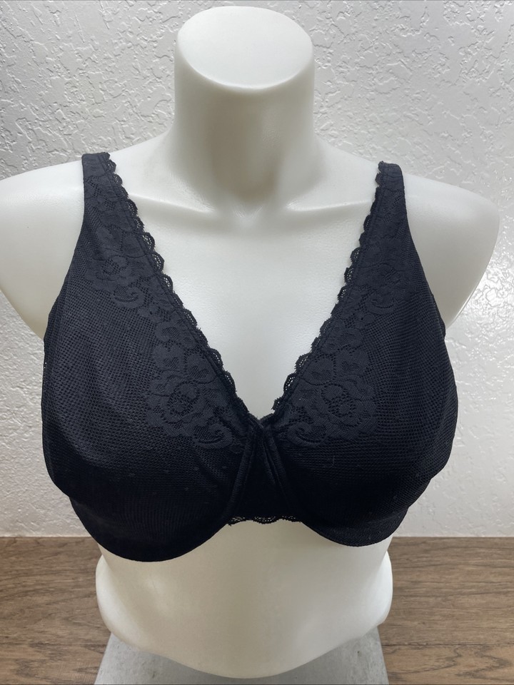 Lilyette Black Underwire Bra Lace Detail Adjustable Supportive Cups 42DD KG JD