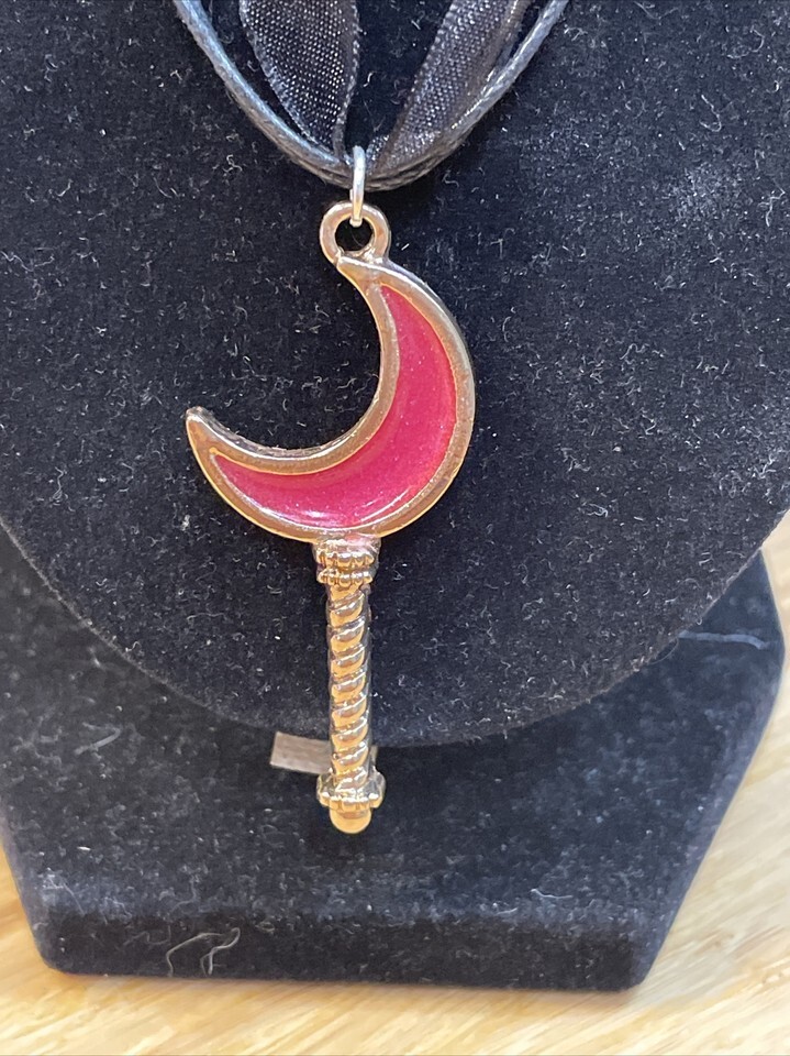 NEW Sailor Moon Pink Moon Stick Black Lace Choker Necklace KG JD