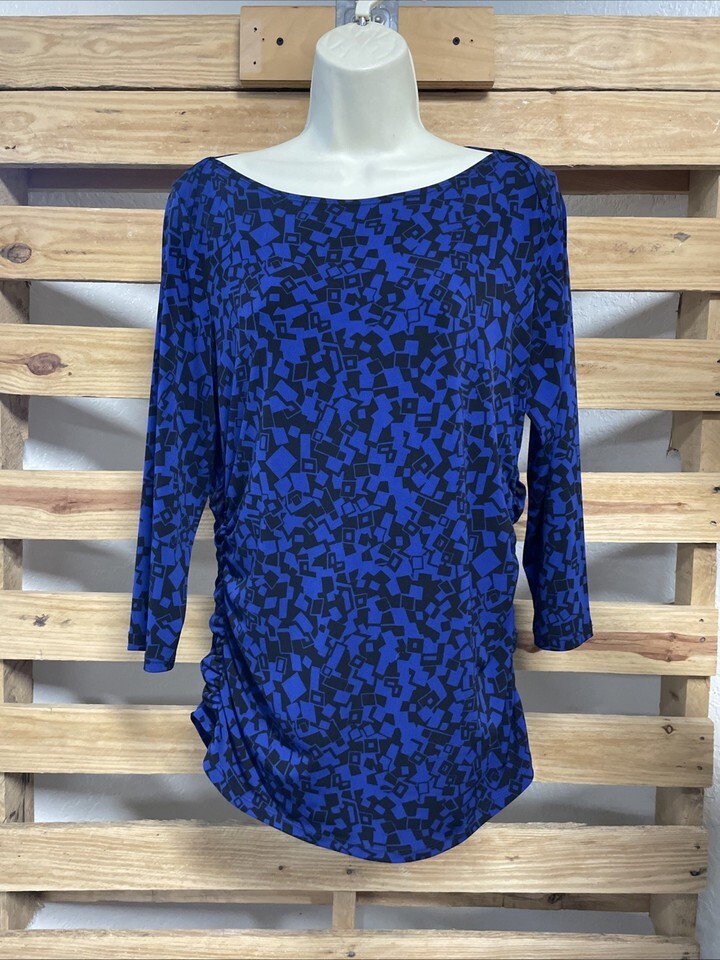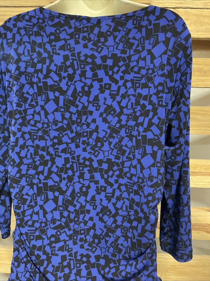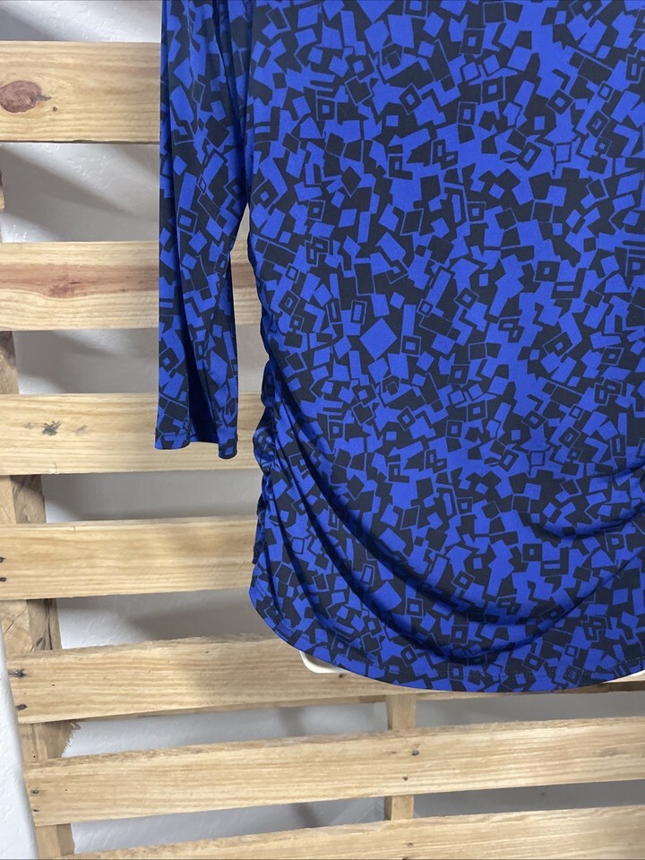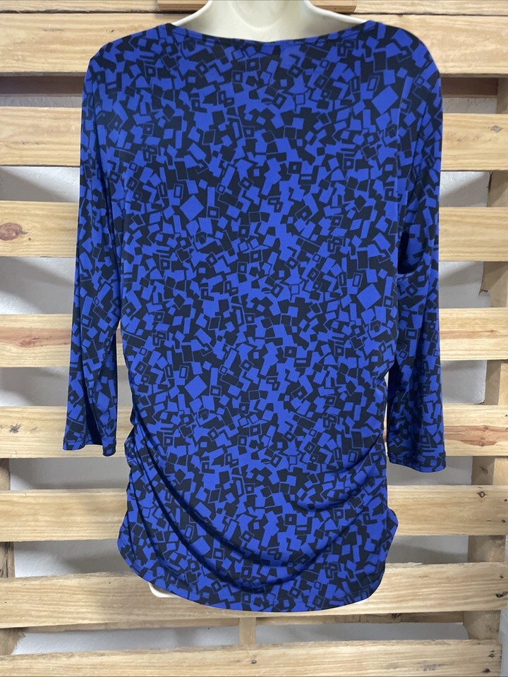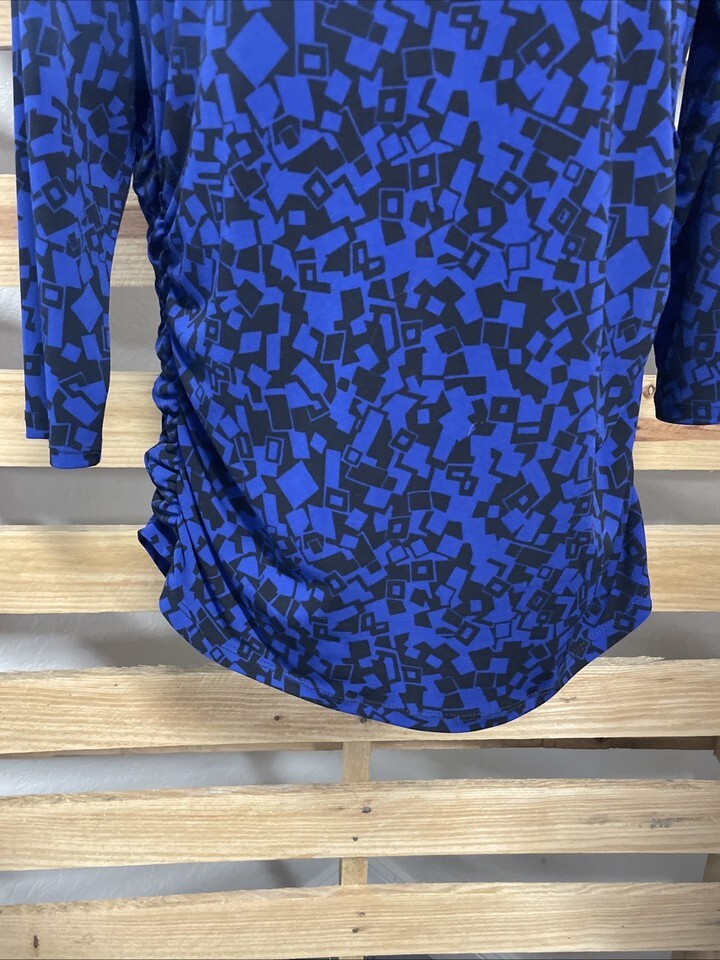 Peter Nygard Blue Black Geometric Shape Top Blouse Woman's Size L KG JD