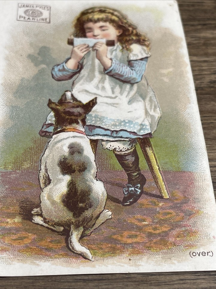 Vintage Antique James Pyle's Pearline Victorian Trading Card Girl Dog KG JD