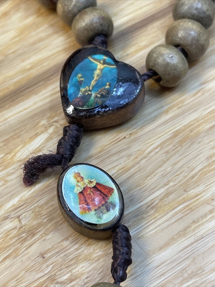 Vintage Wooden Beaded Rosary Catholic Religious Jesus Mary KG