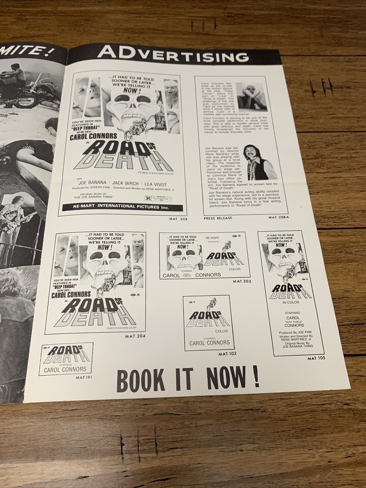 Road Of Death Movie 1973 Press Kit Movie Poster Original Rare CV JD