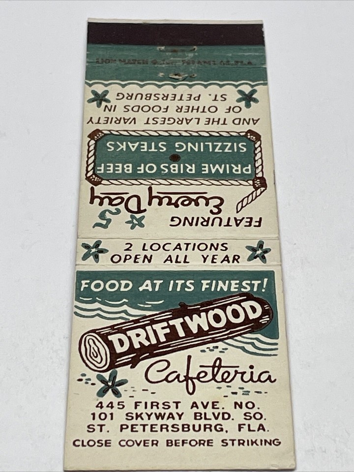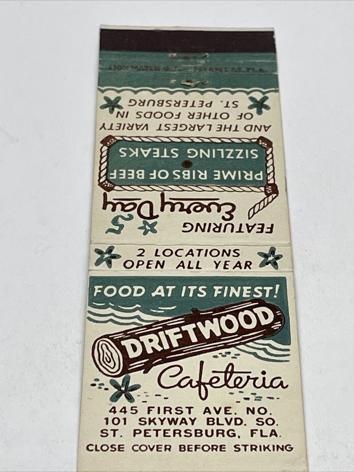 Vintage Matchbook Cover Driftwood Cafeteria ST Petersburg, Fl. gmg Unstruck