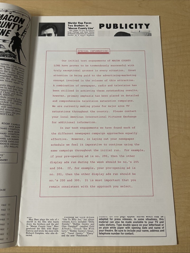 “Macon County Line” Original Movie Press Kit Pressbook Poster CV JD