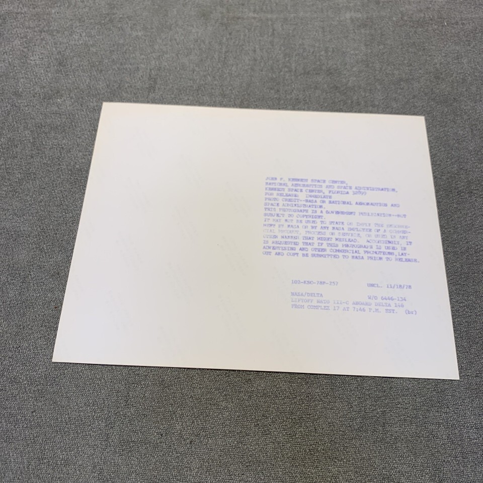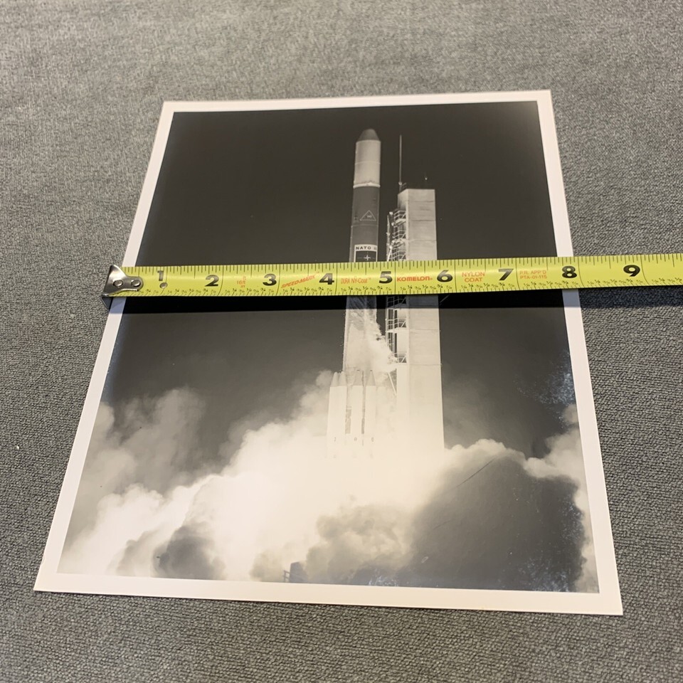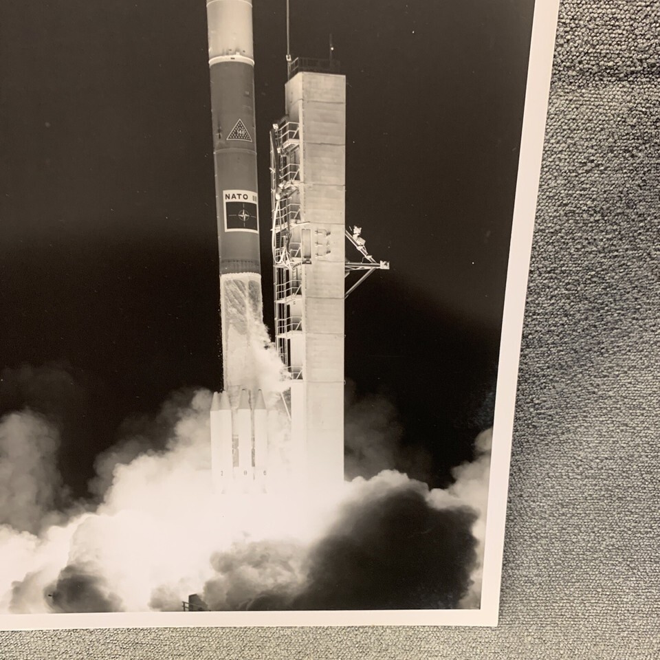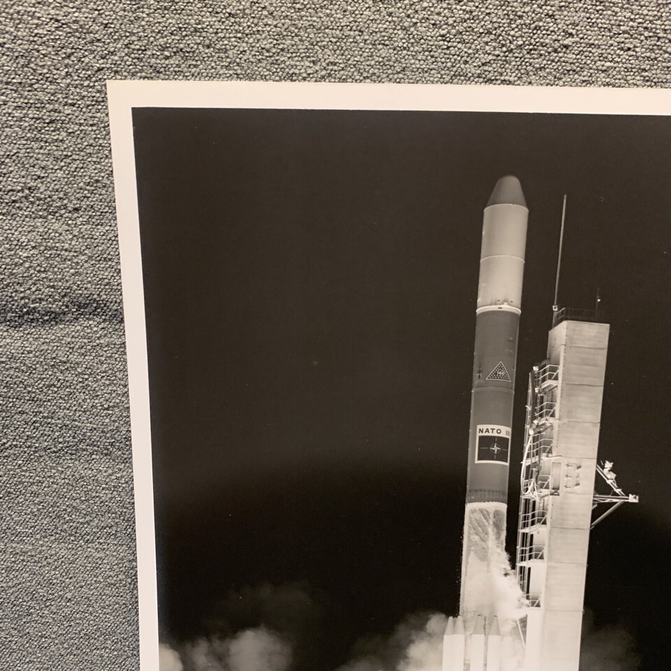 A 8x10 photograph of a Delta Rocket 146 during liftoff from Complex 17. It is carrying a NATO III-C satellite.