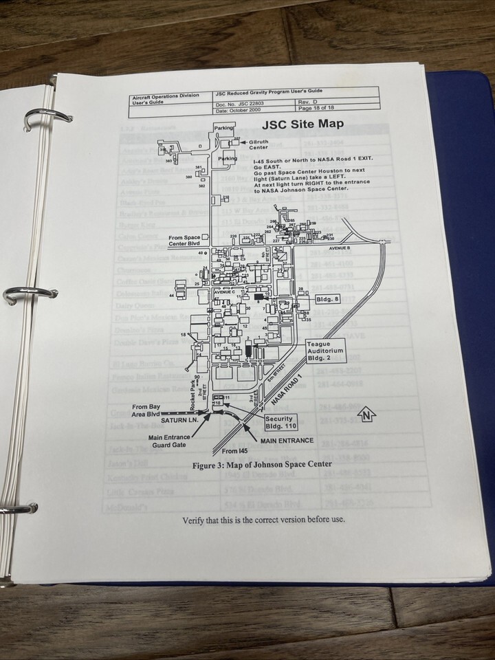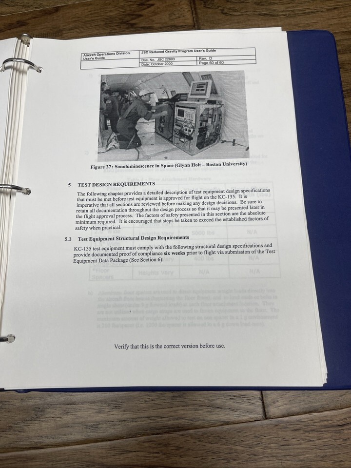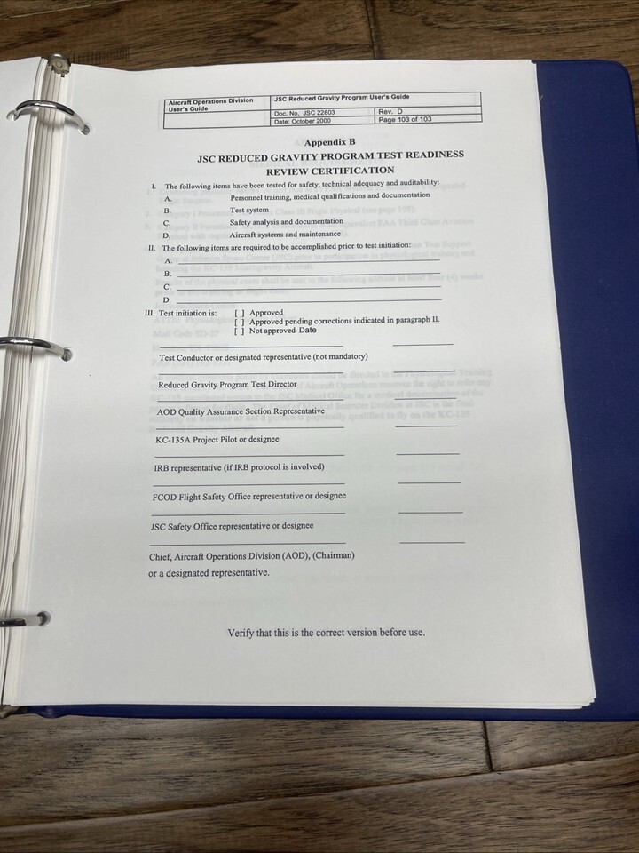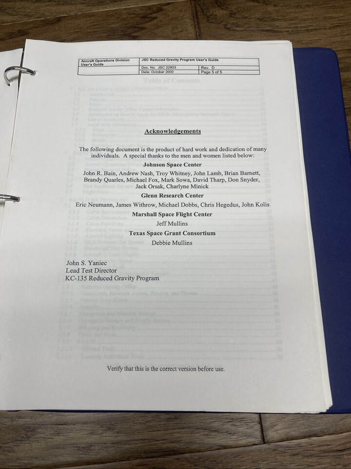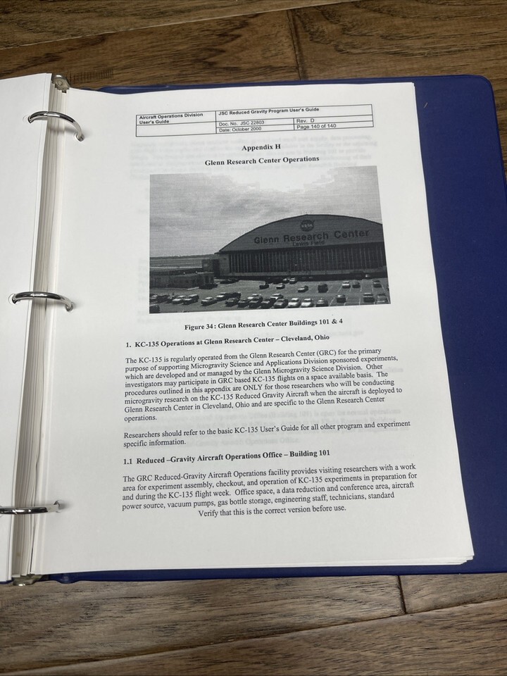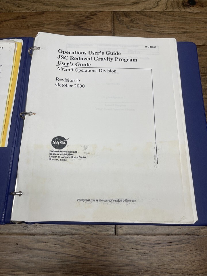 The guide is loose in a binder with some additional documents. Around 100 pages of NASA history!