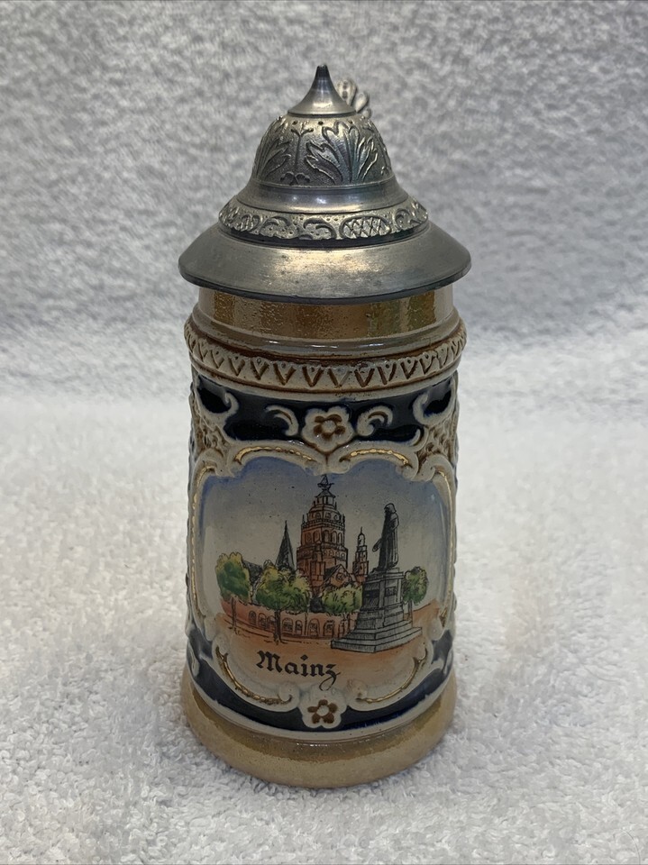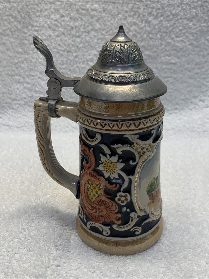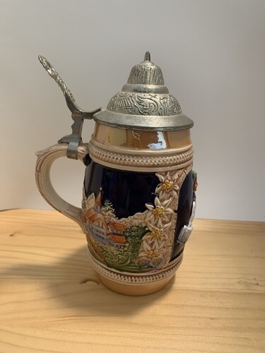 Vintage Original Hoehr Handgemait Lidded Beer Stein West Germany KG Oktoberfest