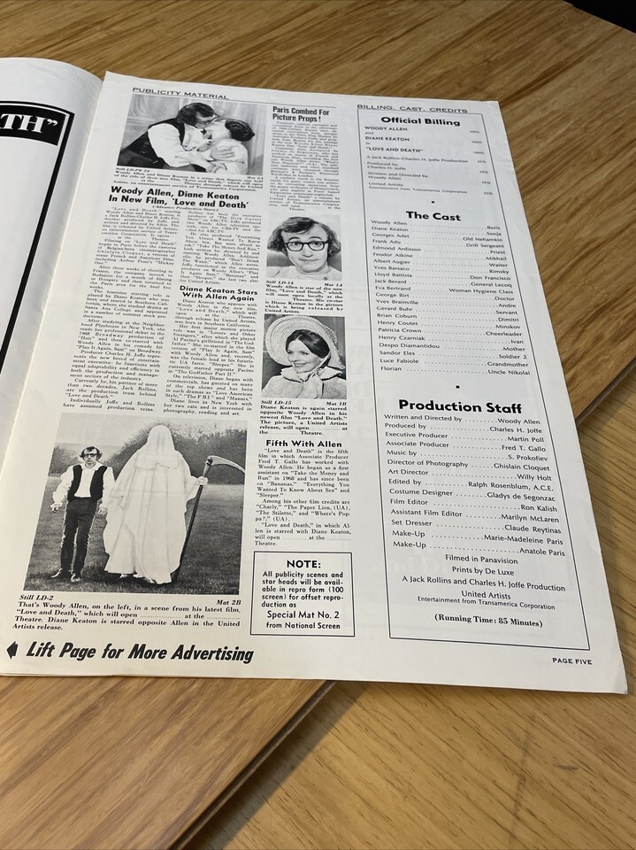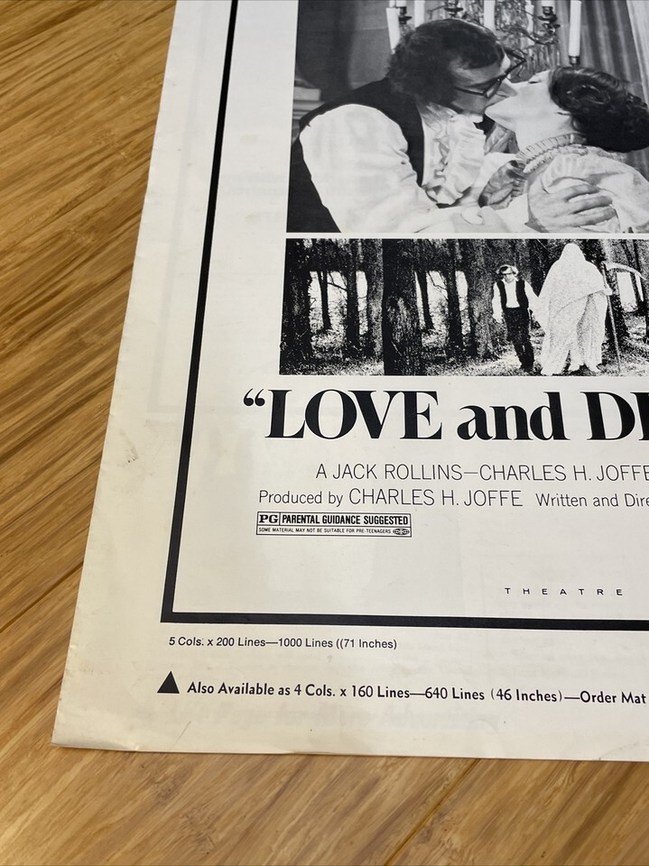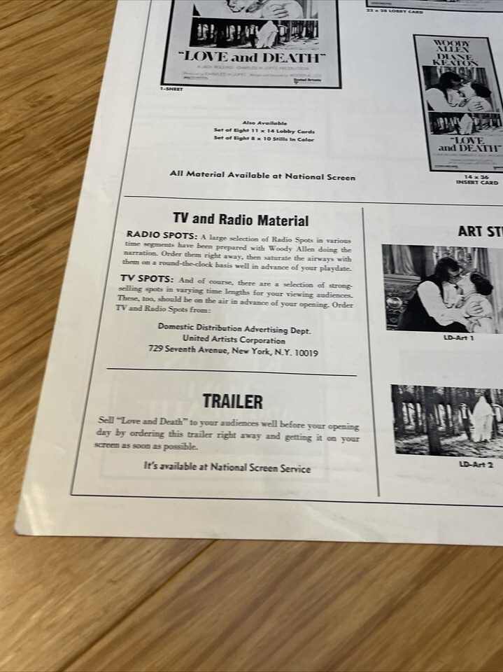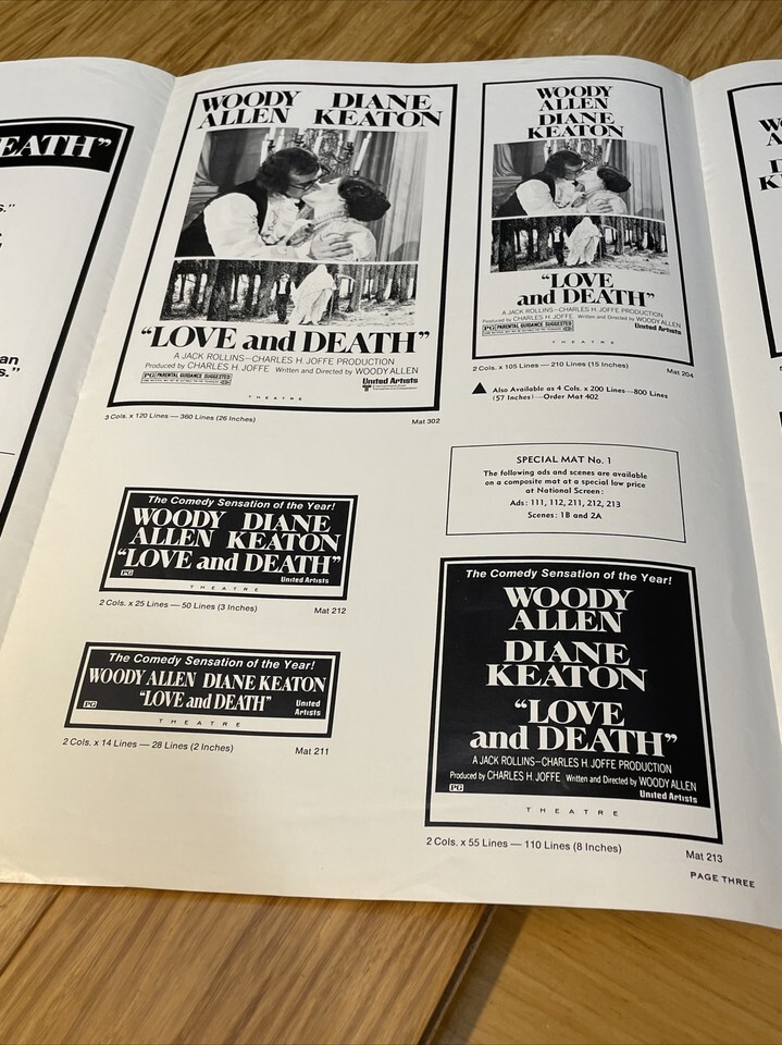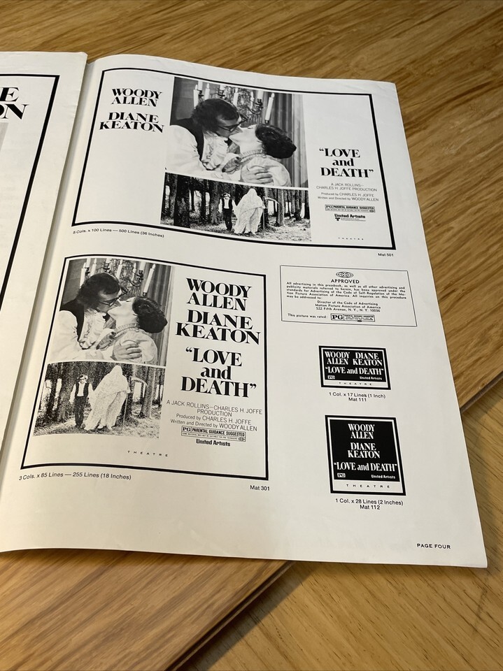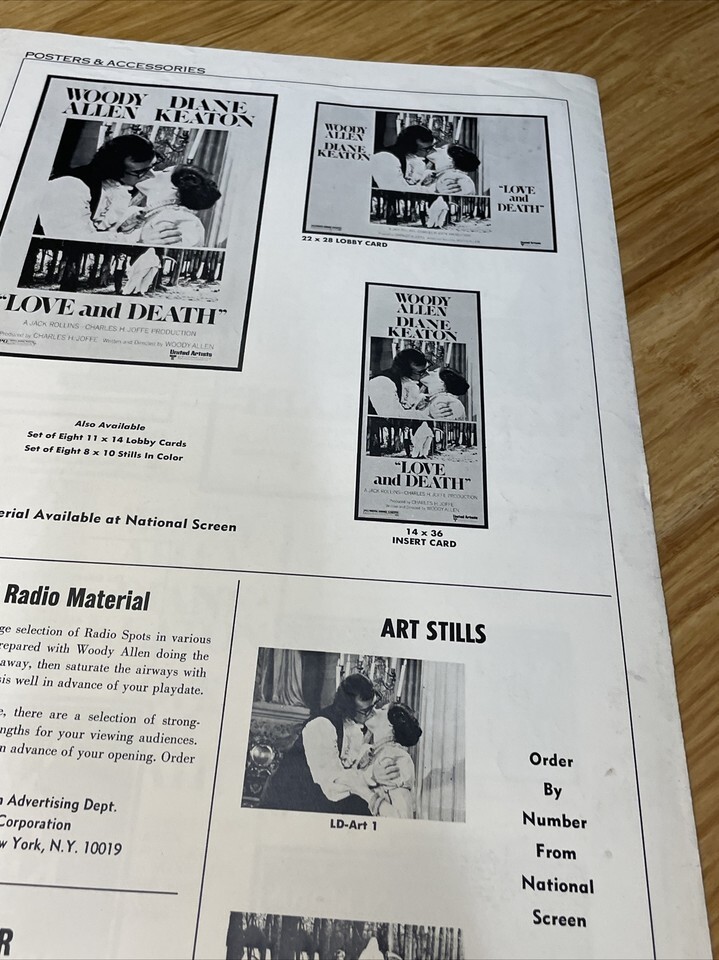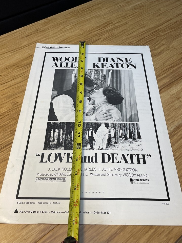 1975 Love & Death Movie Poster Press Kit Vintage Cinema KG Woody Allen Keaton