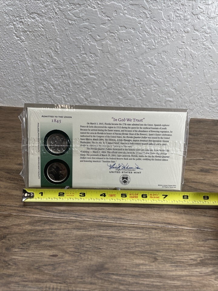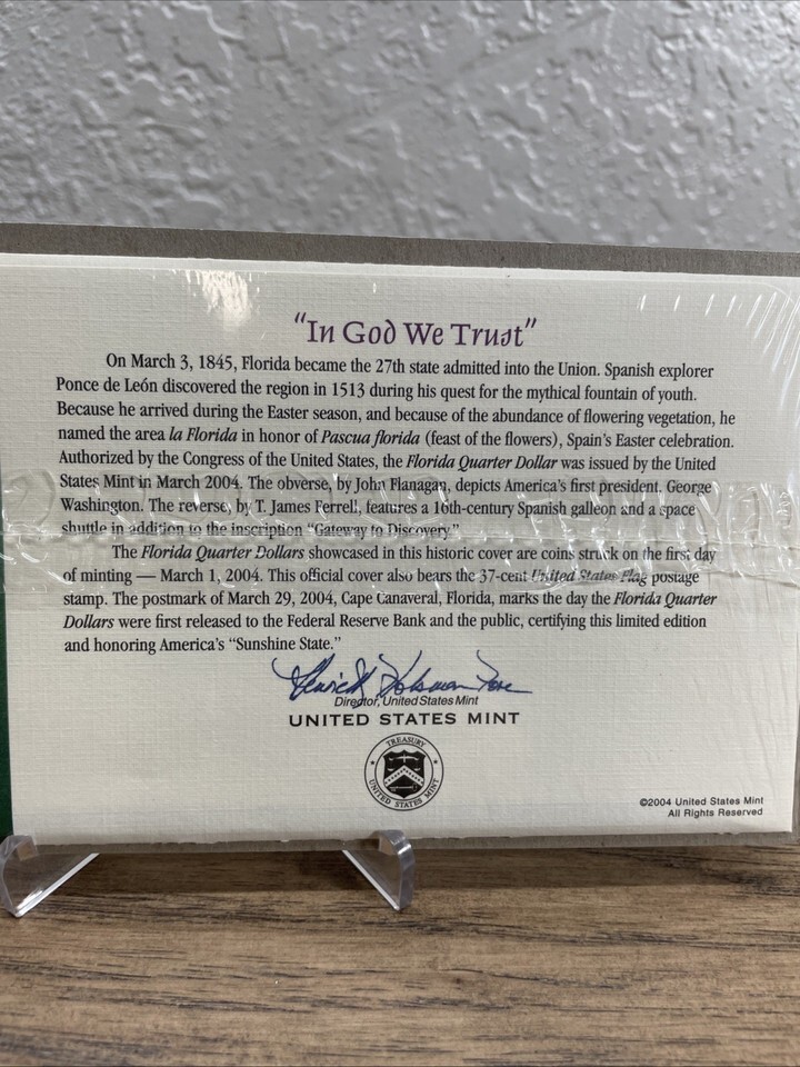 2004 Florida P&D State Quarter First Day Coin Cover Sealed In God We Trust KG JD