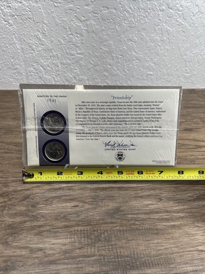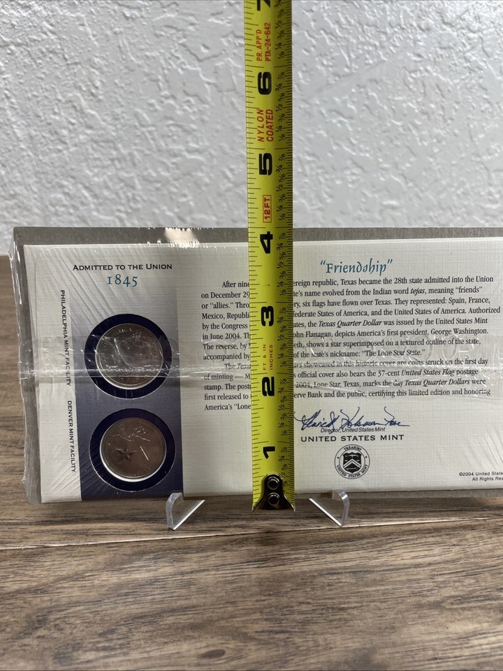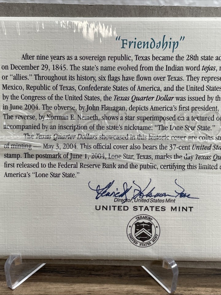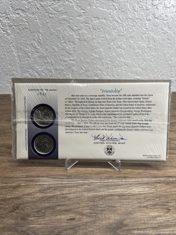 2004 Texas P&D State Quarter First Day Coin Cover Sealed Friendship KG JD