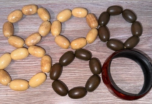 Good wearable condition, with very little wear and tear. All necklaces are hand beaded with wooden beads, except for one. Please see pictures for condition details and measurements.