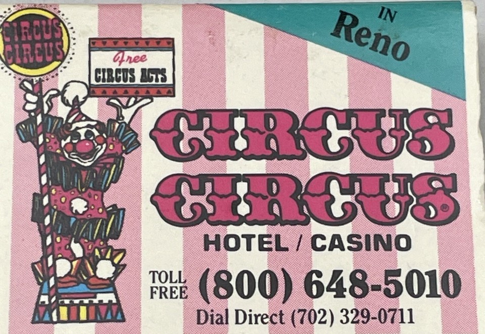 Vintage Matchbook Circus Circus Hotel Casino Reno • Las Vegas, NV gmg Unstruck