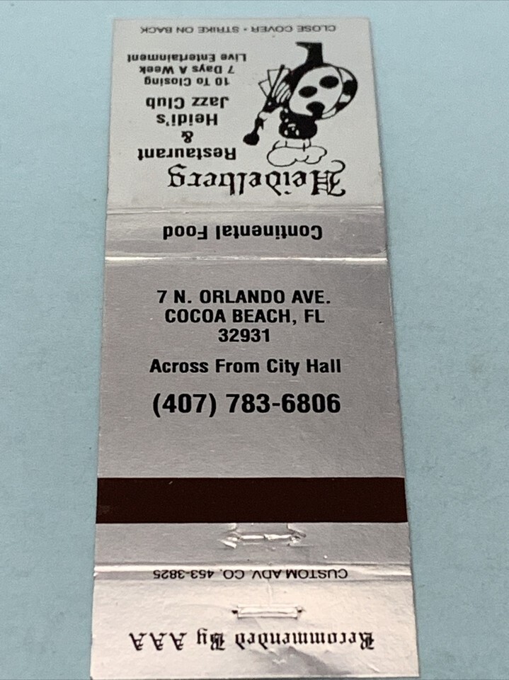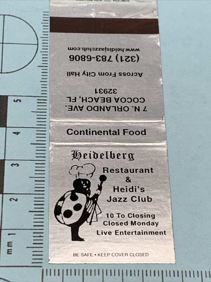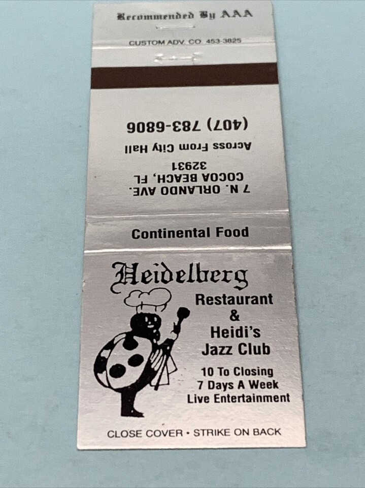 Vintage Matchbook Cover Heidelberg Restaurant-Heid’s Jazz Club Cocoa Bch,Fl gmg