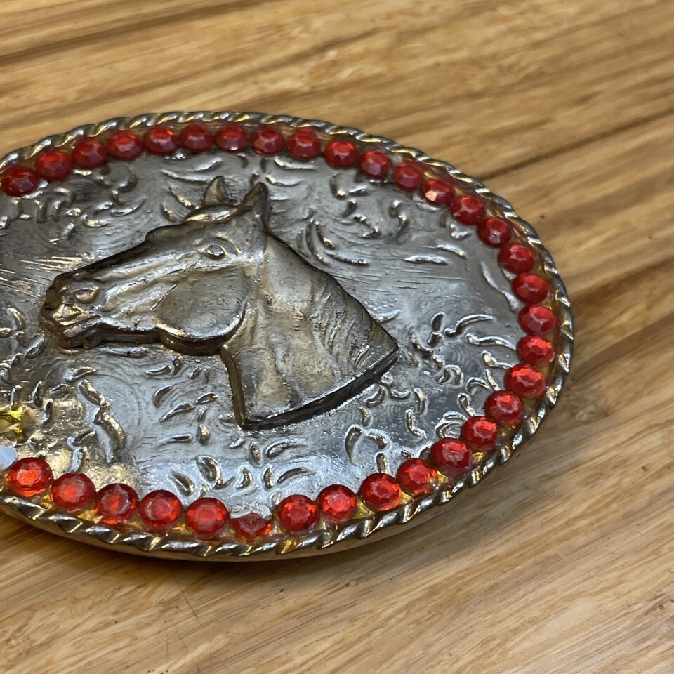 Vintage Silver Tone Horse Belt Buckle and similar items