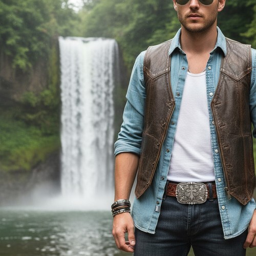 From the estate of a collector! Good wearable condition. Oxidation throughout. Scratches on the front and back of buckle. Someone has bedazzled this belt at some point - there is a bead that has fallen off. Please see pictures for condition details and measurements.
