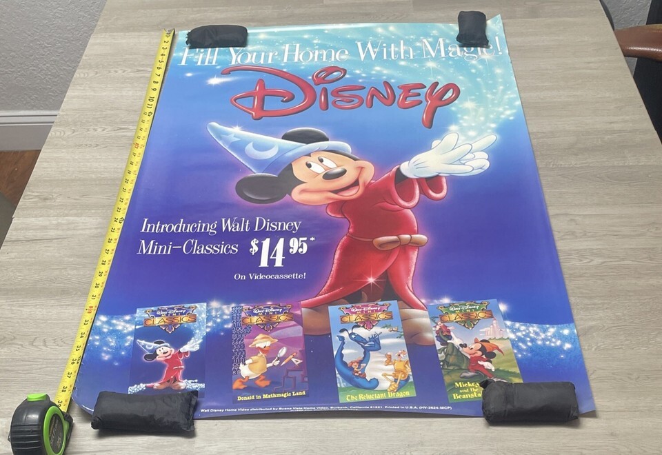 vintage 1988 Walt Disney Mini Classics VHS Release Poster Mickey Mouse 40x26 JG